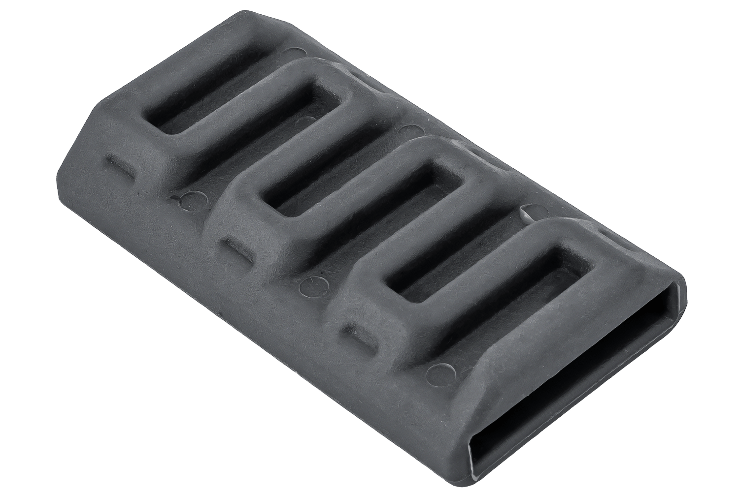 Velgbeschermer voor fietsframe, bevestigd aan de plastic wielbevestigingsband van Inter Pack Spider fietsplatforms.