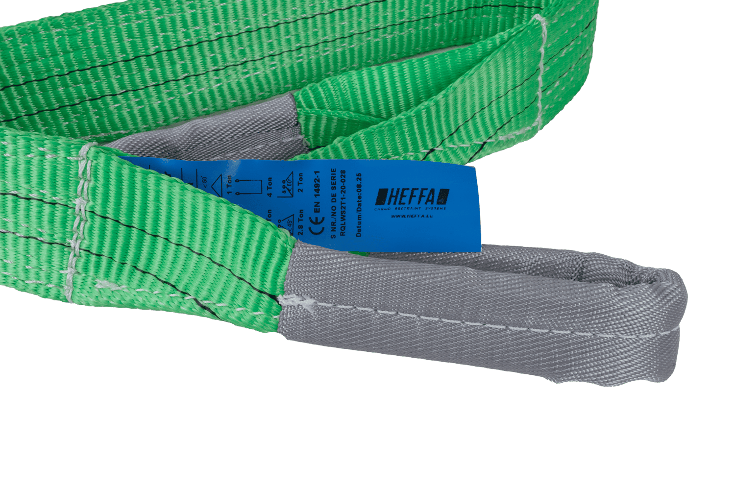 - De HEFFA hijsband is 1 meter lang, 2 ton sterk en 60 mm breed en ideaal voor het hijsen, vastsjorren en ophangen van lasten zonder handgrepen. Hij is gemaakt van hoogwaardige materialen en is zeer duurzaam.