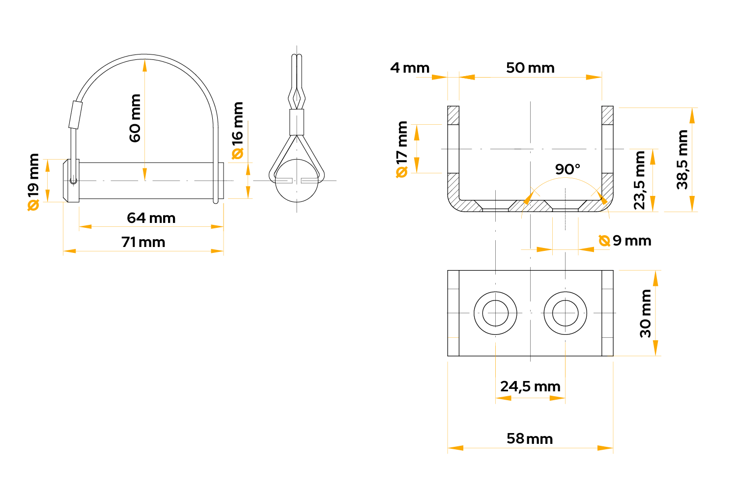 Deze set, bestaande uit een beugel en een zijscharnierbout van WINTERHOFF , is een robuust en betrouwbaar hardwareonderdeel, ontworpen voor zijopeningssystemen in aanhangwagens, opleggers en andere transportvoertuigen. De BSCHG 10-17-B zijscharnierbeugel is 58 mm lang en 30 mm breed, waardoor hij compatibel is met veel standaard zijscharnieren. De BSCHG 10-17-B bout daarentegen heeft een totale lengte van 71 mm en een 64 mm lange pen met een diameter van 16 mm, wat zorgt voor een veilige en stabiele montage. Het gebruik van deze set garandeert soepel openen en sluiten van zijpanelen, wat het comfort, de veiligheid en de functionaliteit van aanhangwagens en bedrijfsvoertuigen verhoogt.