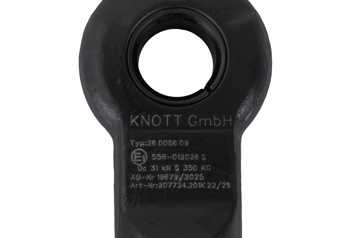 - Het KNOTT KK7293S trekoog is ontworpen voor aanhangers tot 3500 kg. Gemonteerd op een 45 mm buisvormige dissel, verbindt het de aanhanger stevig met het trekkende voertuig.