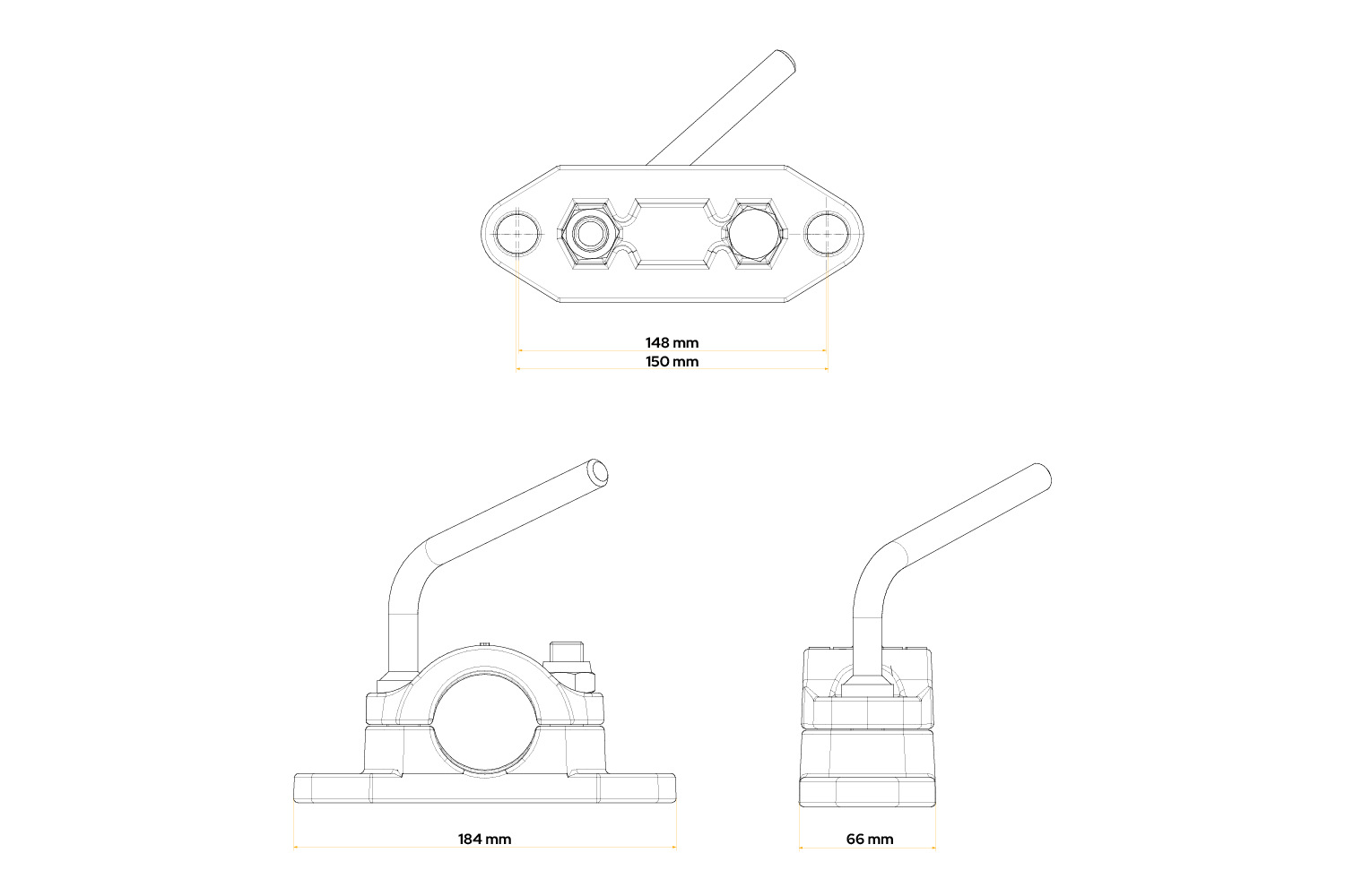 De neuswielklem 6F5090.001 van KNOTT wordt gebruikt voor de montage van neuswielen met een gegolfde buis met een diameter van 48 mm . De basis heeft bevestigingsgaten met een afstand van 147 mm en een diameter van 19 mm. Hiermee kunt u de beugel snel aan het frame of de disselbeugel bevestigen. De drukhendel zorgt voor een stevige grip op de buis, vermindert slippen en trillingen en maakt een snelle aanpassing van de wielhoogte of volledige demontage voor transport of onderhoud mogelijk.