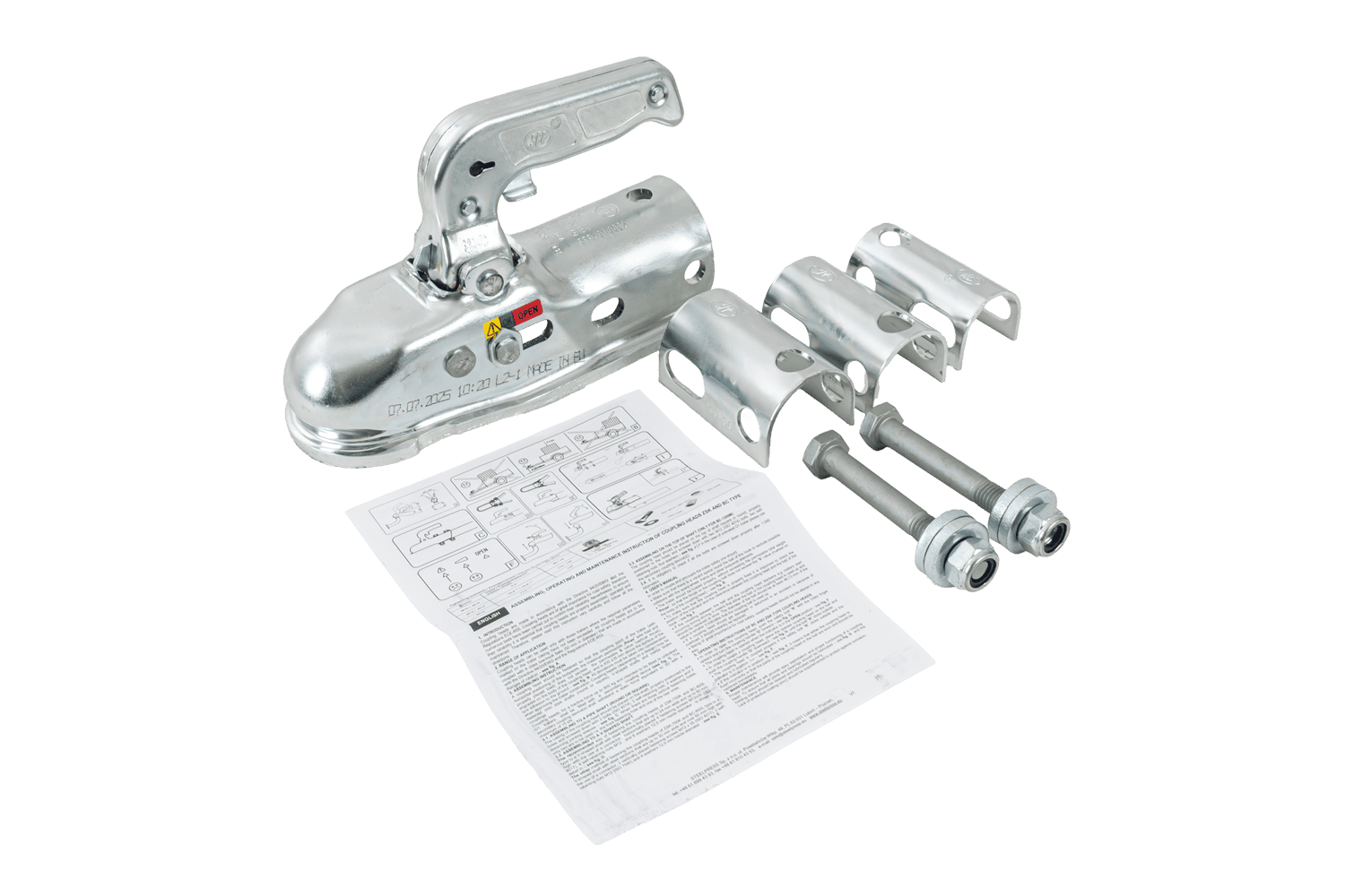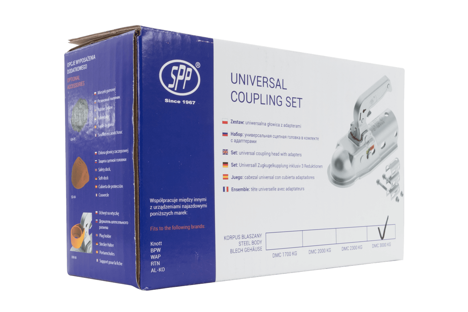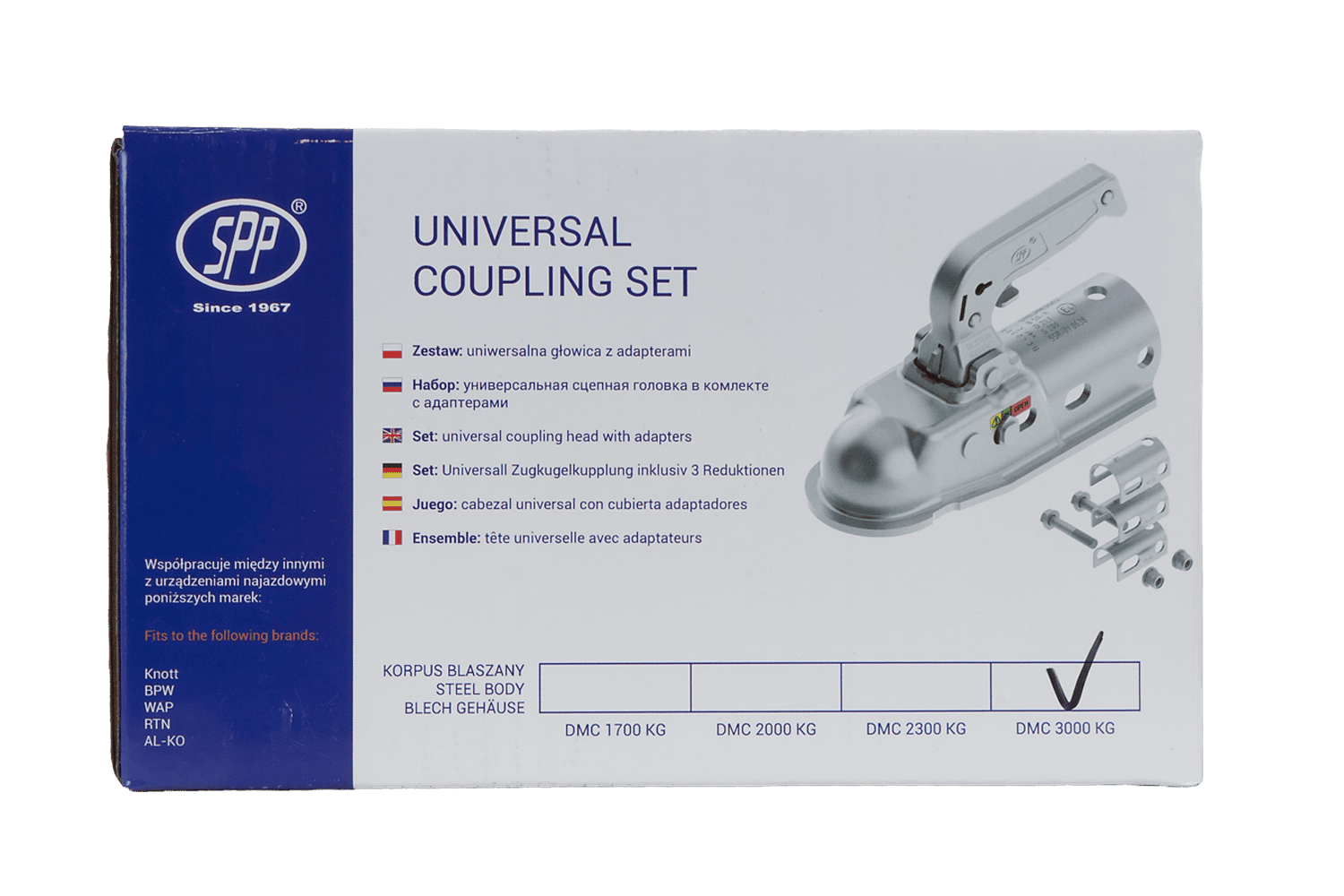 - De BC-3000.1D-00-00 kogelkoppeling is ontworpen voor aanhangwagens tot 3000 kg. De koppelingskop is gemonteerd op een buisvormige dissel en wordt geleverd met adapters die compatibiliteit met oploopremsystemen met een schuifbuis met een diameter van 35-50