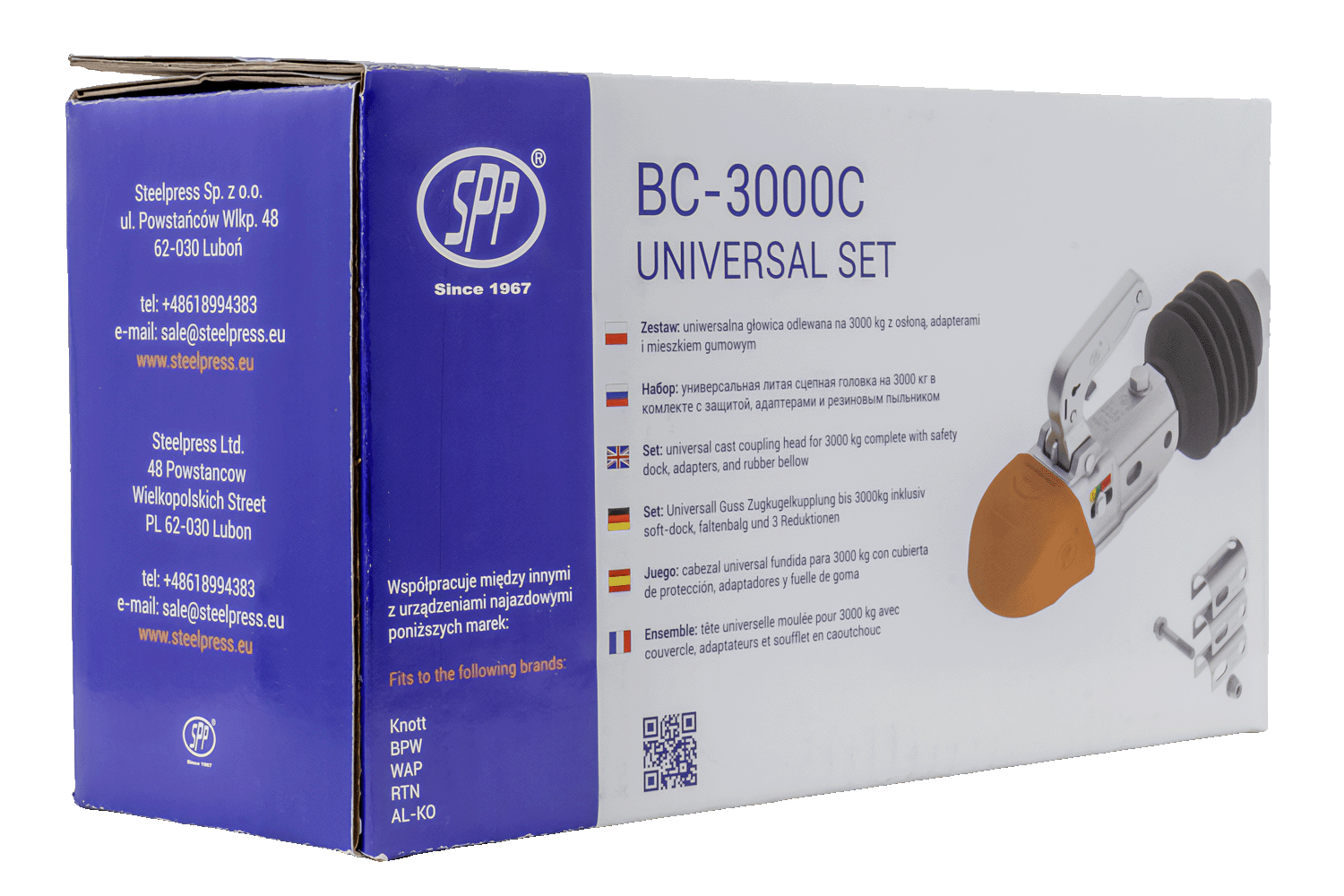 De kogelkoppeling BC-3000C-00-00 van STEELPRESS is een robuuste en betrouwbare oplossing voor zware opleggers en diepladers met een totaalgewicht tot 3.000 kg . De koppelingskop heeft een gegoten behuizing en de hendel is van staal, wat zorgt voor een hoge duurzaamheid en belastingsweerstand. Ontworpen voor montage op een oplooprem of een dissel met een buisprofiel van 35-50 mm , garandeert het een stabiele en veilige verbinding met het trekkende voertuig. De toegestane verticale belasting tot 300 kg maakt het vervoer van zware lasten mogelijk met behoud van een optimale gewichtsverdeling. Dankzij het robuuste ontwerp en de hoogwaardige afwerking is de BC-3000C-00-00-koppeling de ideale keuze voor professionals en veeleisende gebruikers, en garandeert veiligheid, zelfs onder de meest veeleisende bedrijfsomstandigheden. De kop is uitgerust met een vergrendeling die onbedoeld losraken van de koppeling tijdens het rijden voorkomt, wat de transportveiligheid verhoogt.