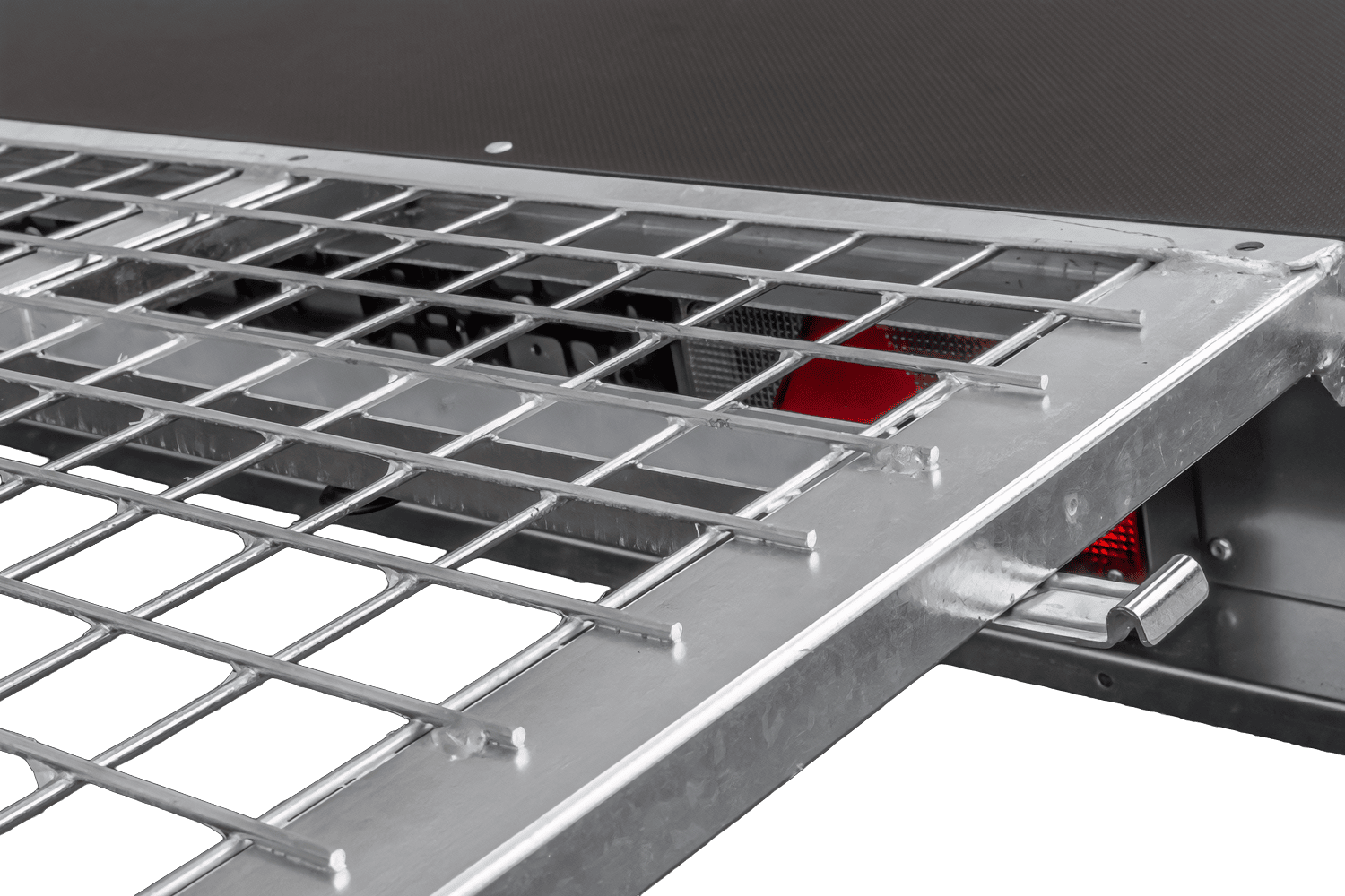 Deze duurzame gaashek is 88,6 cm hoog en 125,5 cm breed en is gemaakt van een sterke, corrosiebestendige stalen constructie. Het maximale draagvermogen is 400 kg , wat stabiliteit en veiligheid tijdens gebruik garandeert. Het gaashek biedt uitstekende grip en afvoer van water en vuil, waardoor de helling zelfs onder slechte weersomstandigheden gemakkelijk te gebruiken is.