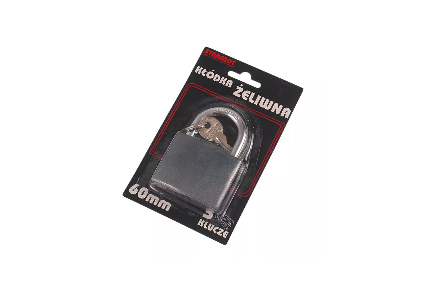 Het 60 mm dikke, geharde gietijzeren hangslot biedt robuuste beveiliging en is gemaakt van duurzaam, slagvast en corrosiebestendig materiaal. Het is voorzien van een gehard oog met een diameter van 8 mm , wat zorgt voor een hoge weerstand tegen doorknippen en wrikken. Het compacte formaat van het hangslot maakt het eenvoudig te monteren in diverse sluitsystemen, van gereedschapskisten, poorten en kasten tot veiligheidskettingen.