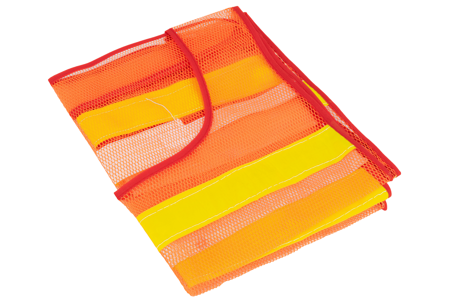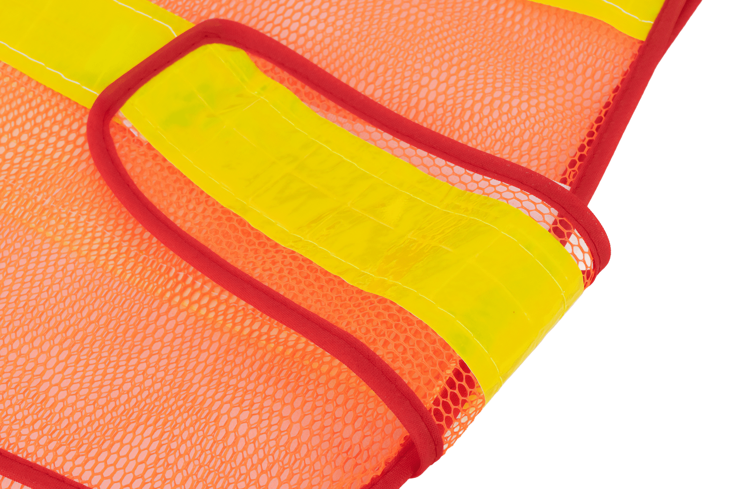 Dit XXL oranje reflecterende vest is gemaakt van lichtgewicht maar duurzaam materiaal . Het is CE-gecertificeerd en voldoet aan de eisen van de EN ISO 20471:2013- norm voor reflecterende kleding. Het heeft drie brede reflecterende strepen die zorgen voor uitstekende zichtbaarheid vanuit alle richtingen, zowel overdag als 's nachts.