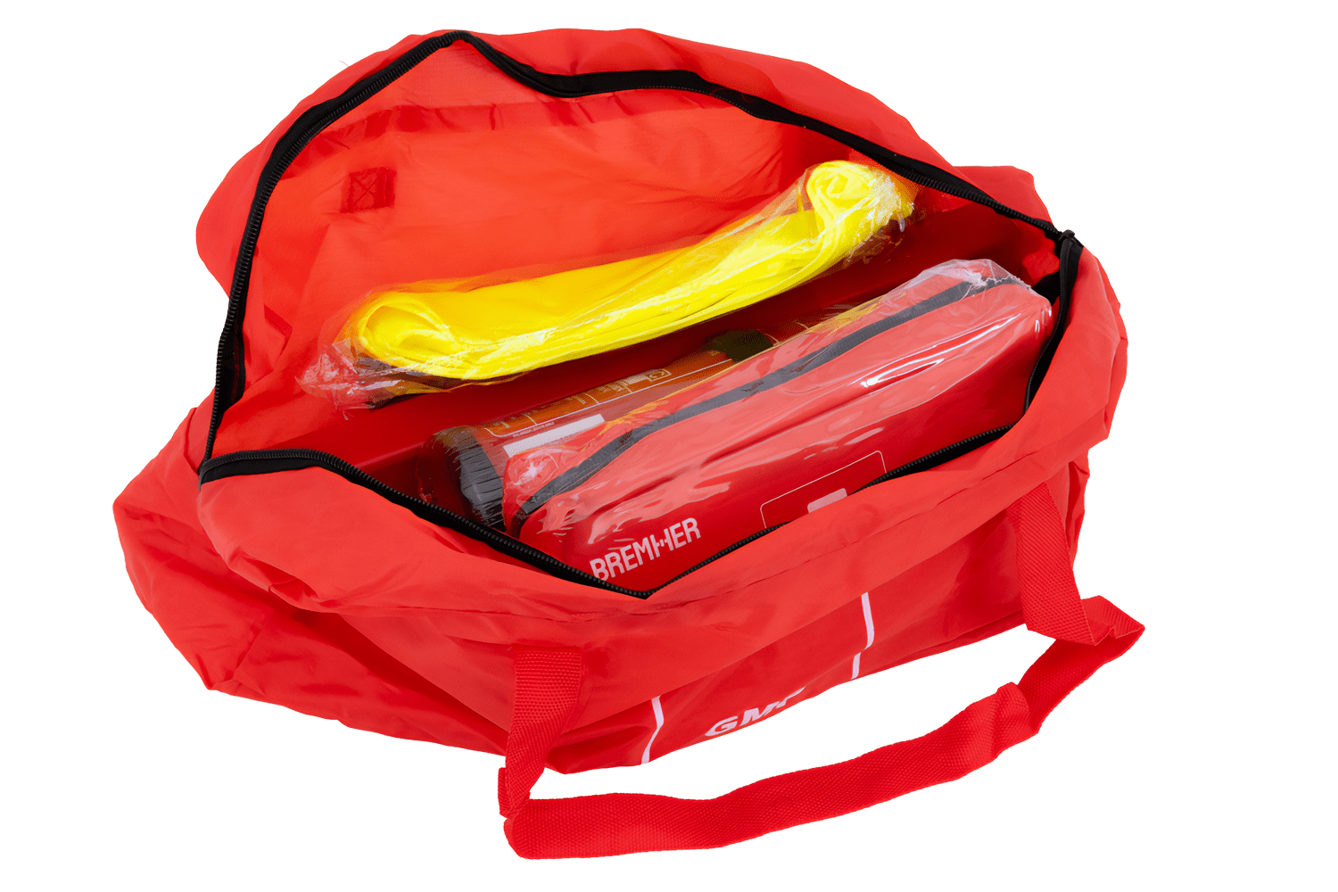 Een praktische verkeersveiligheidsset in een stevige tas met ritssluiting , gemakkelijk op te bergen in de kofferbak of onder een stoel. De set bevat alle benodigdheden die nodig zijn bij pech of een ongeval.