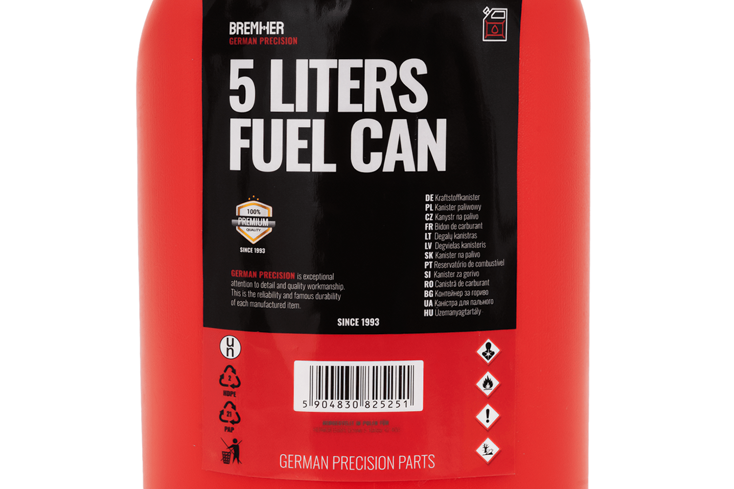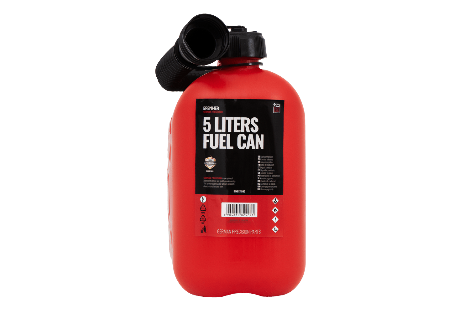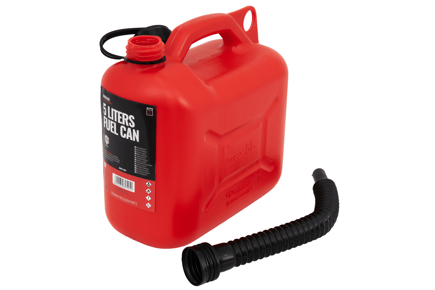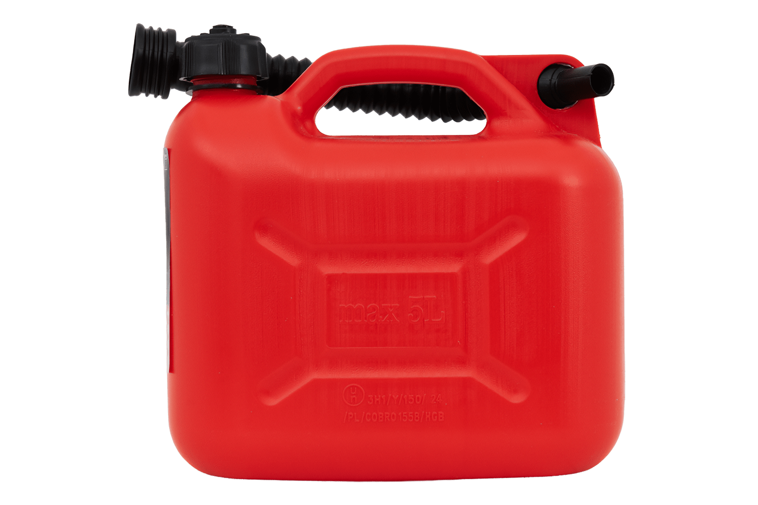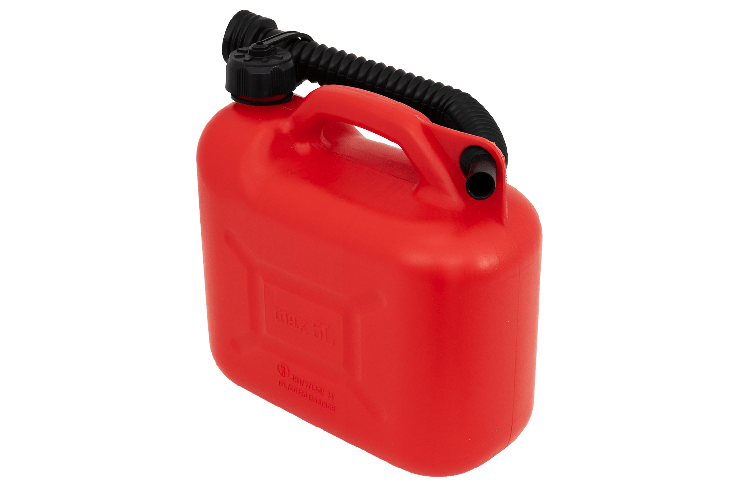 - Deze 5 liter HDPE-kunststof jerrycan, voorzien van een handgreep en een flexibele schenktuit, vergemakkelijkt het veilig opslaan en schenken van brandstof. Hij is EU-goedgekeurd voor het transport van brandstoffen, inclusief brandbare brandstoffen.