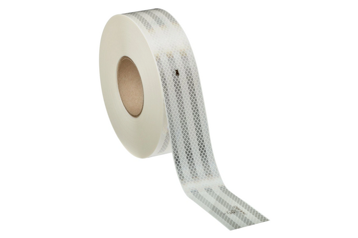 - 3M witte reflecterende folie (5,5 cm x 50 m) is een zelfklevende contourtape voor het markeren van vrachtwagens en trailers. Gemaakt van microprismatische folie, biedt het een hoge zichtbaarheid en duurzaamheid, waardoor de verkeersveiligheid onder alle o