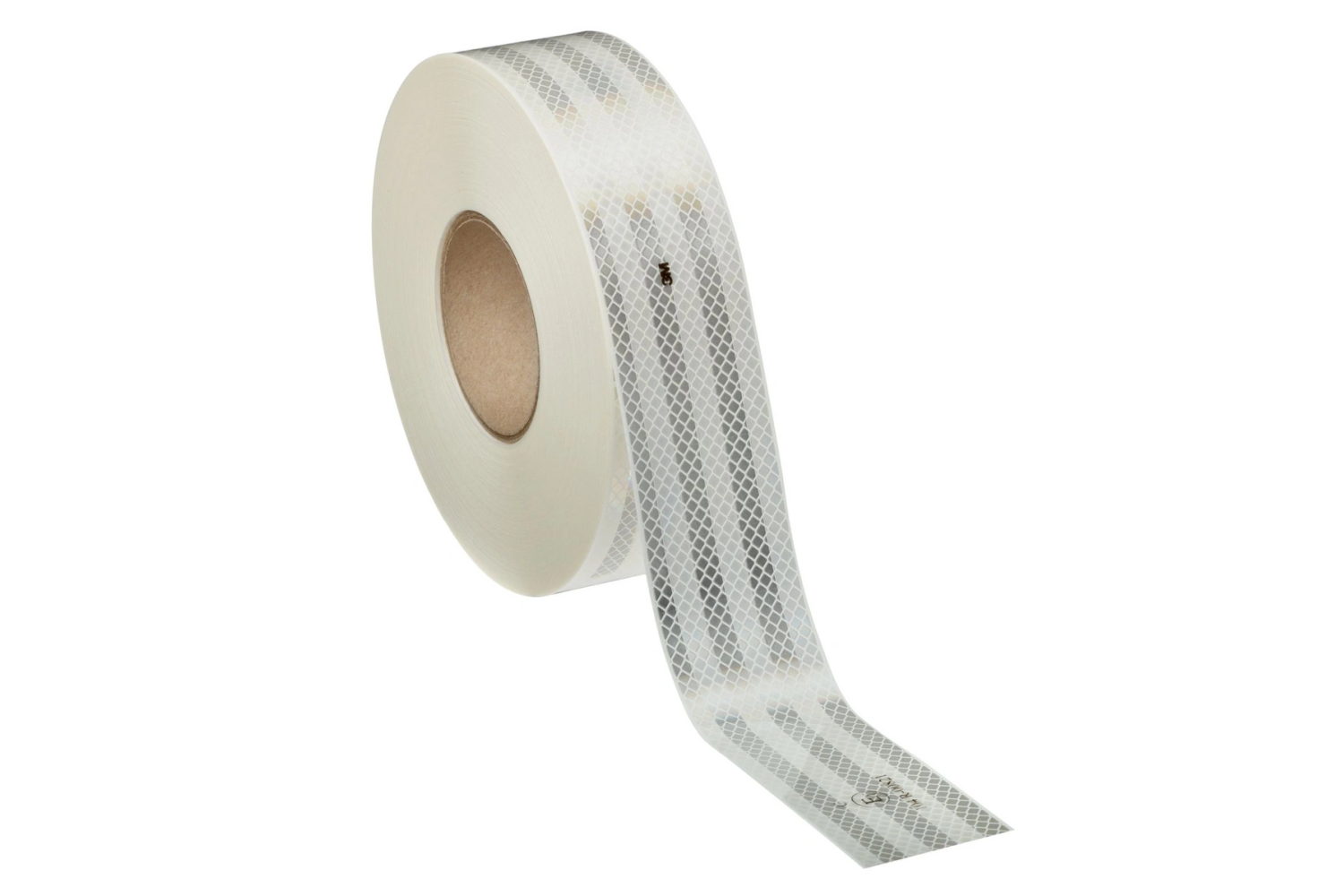 3M Scotchlite Diamond Grade 983 witte reflecterende tape, 55 mm (5,5 cm) breed en 50 m lang, is een hoogwaardige oplossing voor het markeren van de contouren van vrachtwagens , trailers en grote machines. Het is ontworpen voor toepassing op harde oppervlakken en biedt uitzonderlijke zichtbaarheid van voertuigen, zowel overdag als 's nachts.
