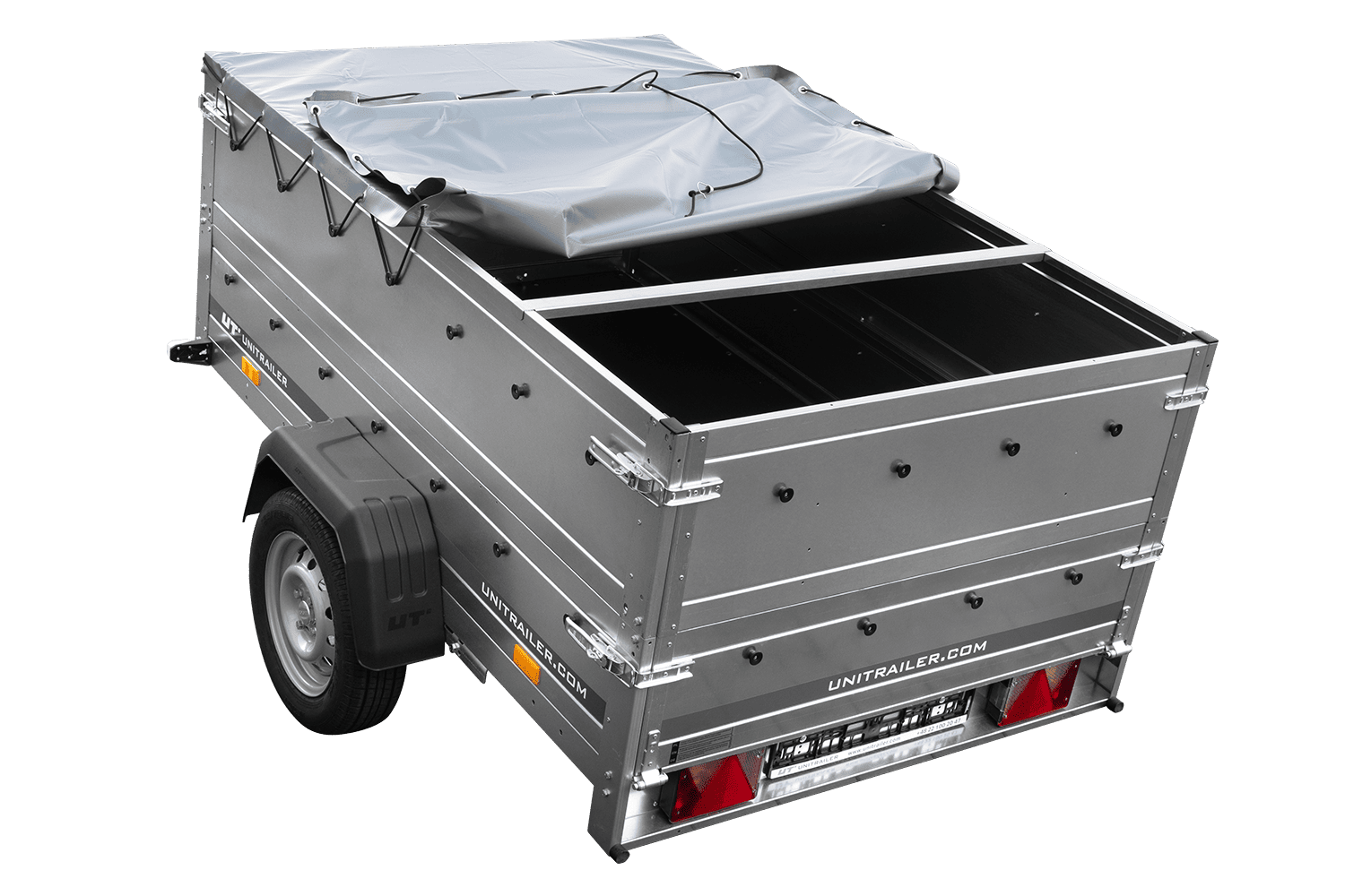 Lichte aanhangwagen op veren 200x125 UNITRAILER GARDEN 201/R KIPP met BIS zijwanden, H-0 frame en grijs zeil