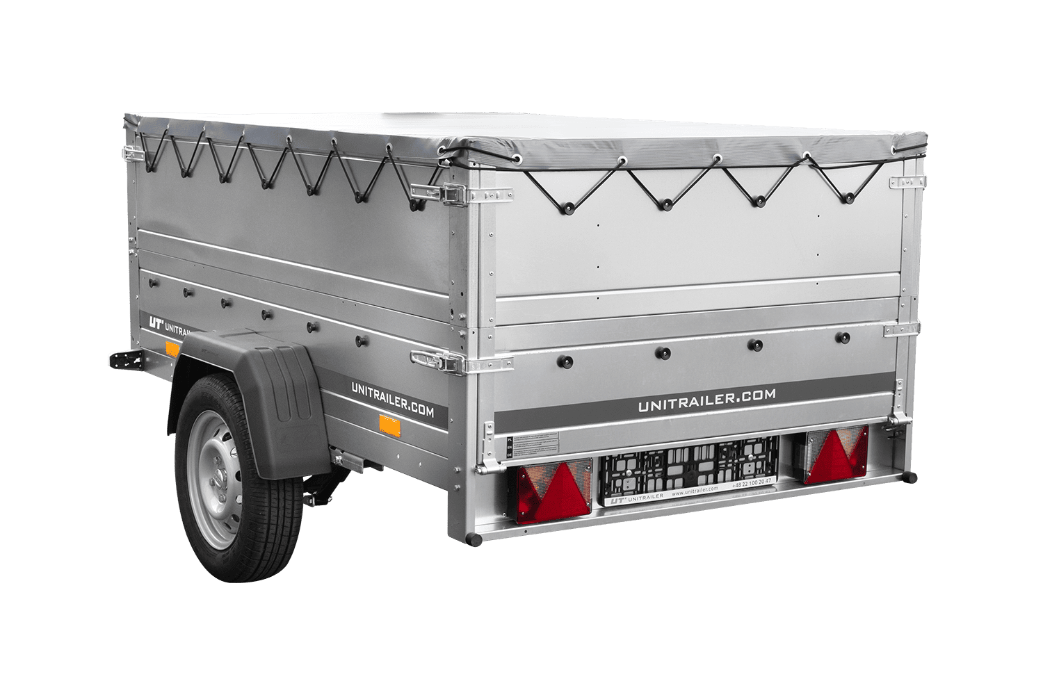 - De UNITRAILER GARDEN 201/R KIPP enkelassige aanhangwagen is voorzien van robuuste vering en een transportoppervlak van 200x125 cm. De set is inclusief BIS zijborden, een H-O frame en een grijs afdekzeil.