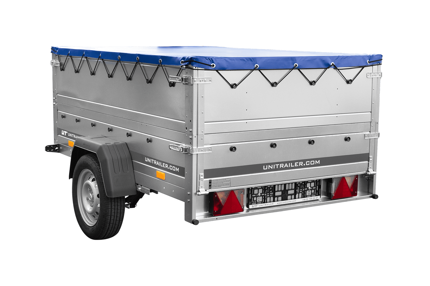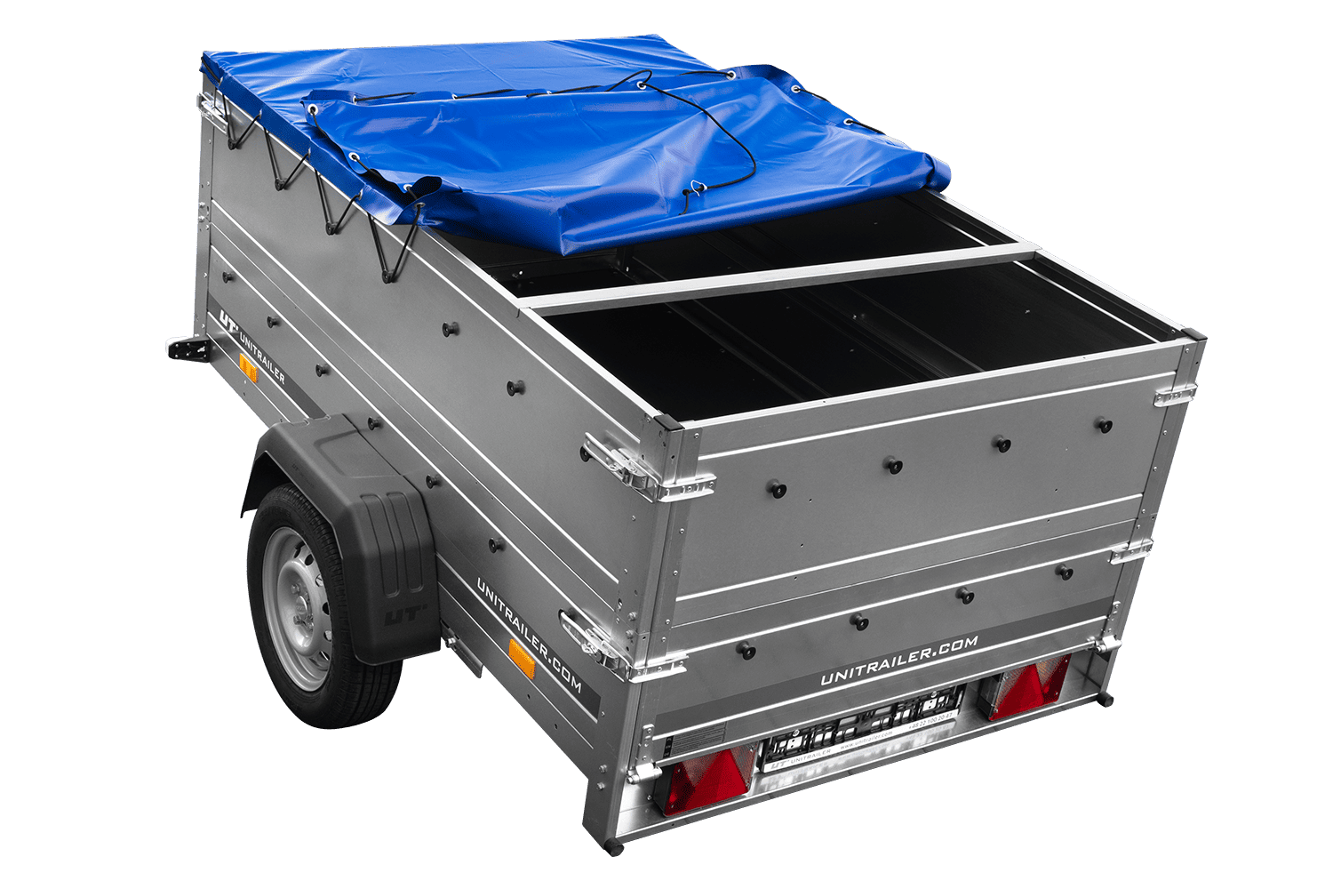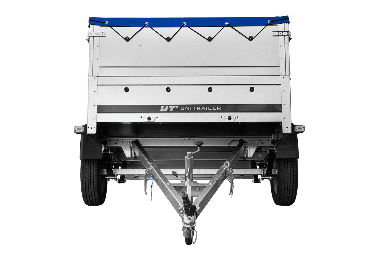 Lichte aanhangwagen op veren 200x125 UNITRAILER GARDEN 201/R KIPP met BIS zijwanden, H-0 frame en blauw zeil
