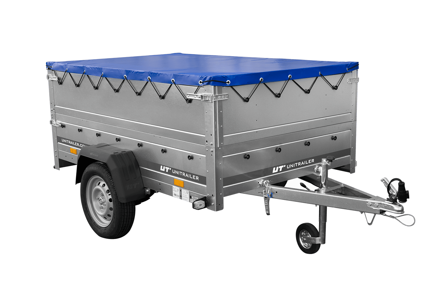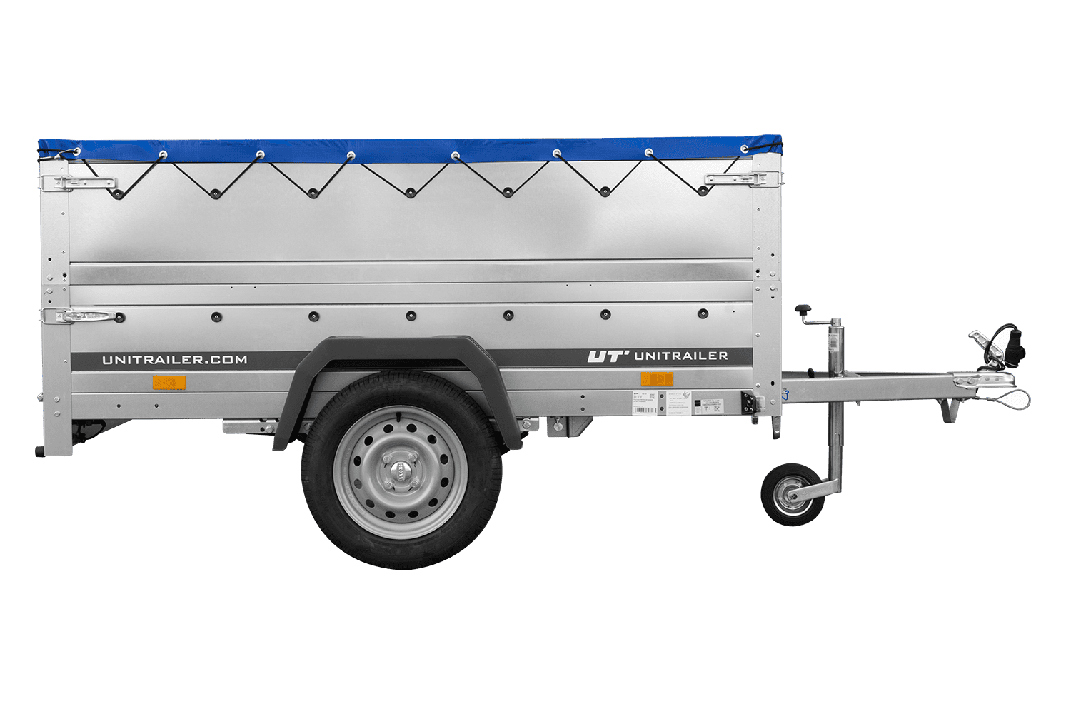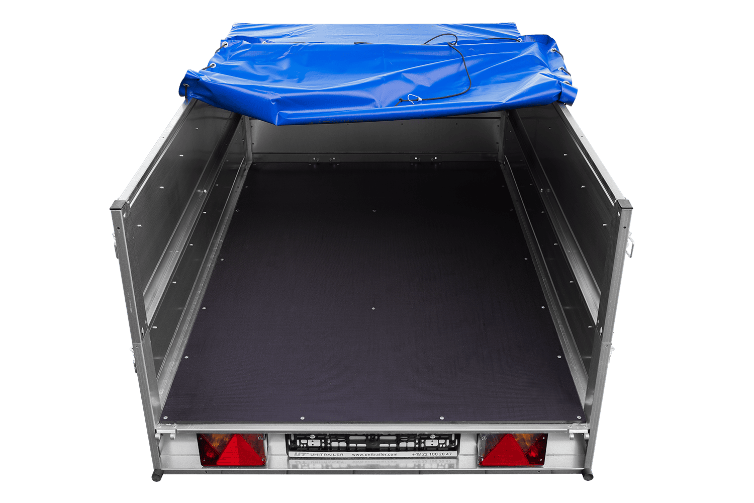 Lichte aanhangwagen op veren 200x125 UNITRAILER GARDEN 201/R KIPP met BIS zijwanden, H-0 frame en blauw zeil