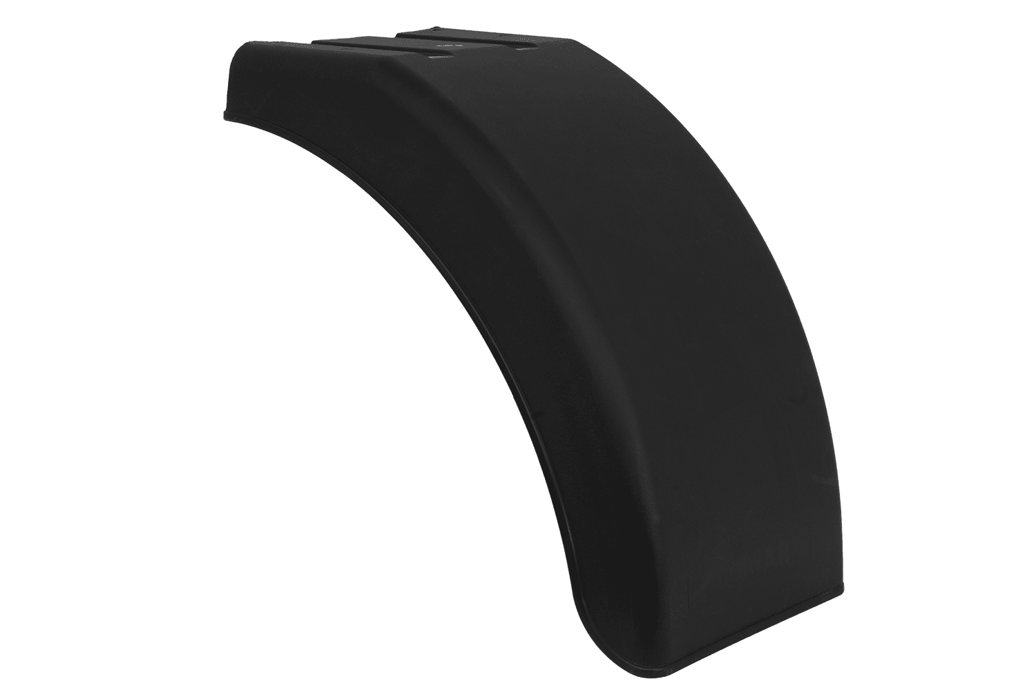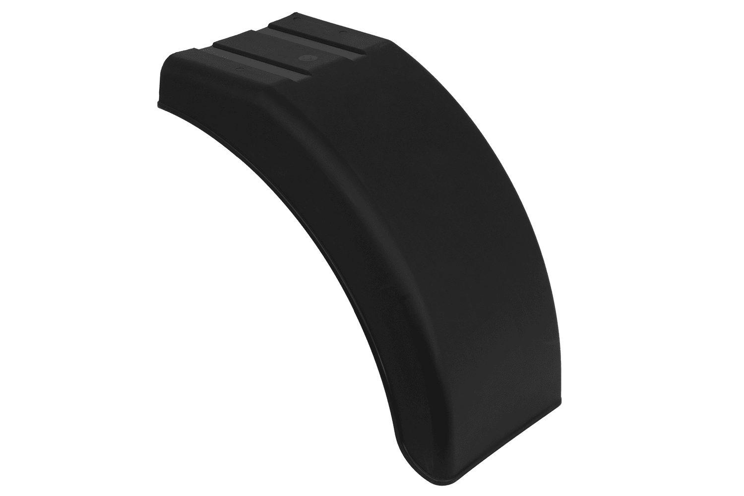 Het DR1013005 linker halve spatbord van DOMAR wordt aan de linkerzijde van het voertuig gemonteerd (gezien in de rijrichting). Dit compacte en duurzame halve spatbord is ontworpen om de wielen van aanhangwagens, lichte landbouw- of bouwmachines en andere bedrijfsvoertuigen te beschermen. Met afmetingen van 395 mm lang, 220 mm breed en 360 mm hoog is het perfect voor gebieden die effectieve bescherming tegen water, modder en steenslag vereisen, en tegelijkertijd ruimtebesparend zijn. Het heeft geen fabrieksmatige montagegaten , waardoor de gebruiker de bevestigingspunten vrij kan aanpassen aan het specifieke voertuigontwerp. De vlakke onderkant, met extra reliëf dat het spatbord verstevigt, maakt eenvoudige bevestiging direct op het chassis mogelijk, voor een snelle en gemakkelijke installatie.