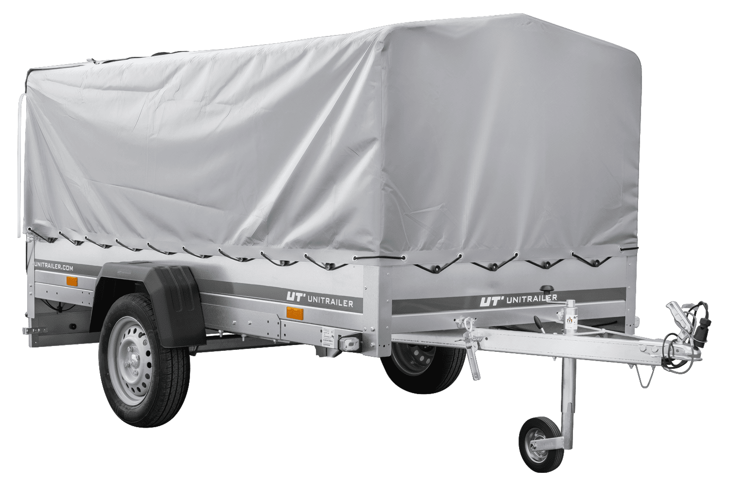 Enkelassige aanhangwagen op veren 264x125 UNITRAILER GARDEN 264/R KIPP met H-800 frame en grijs zeil