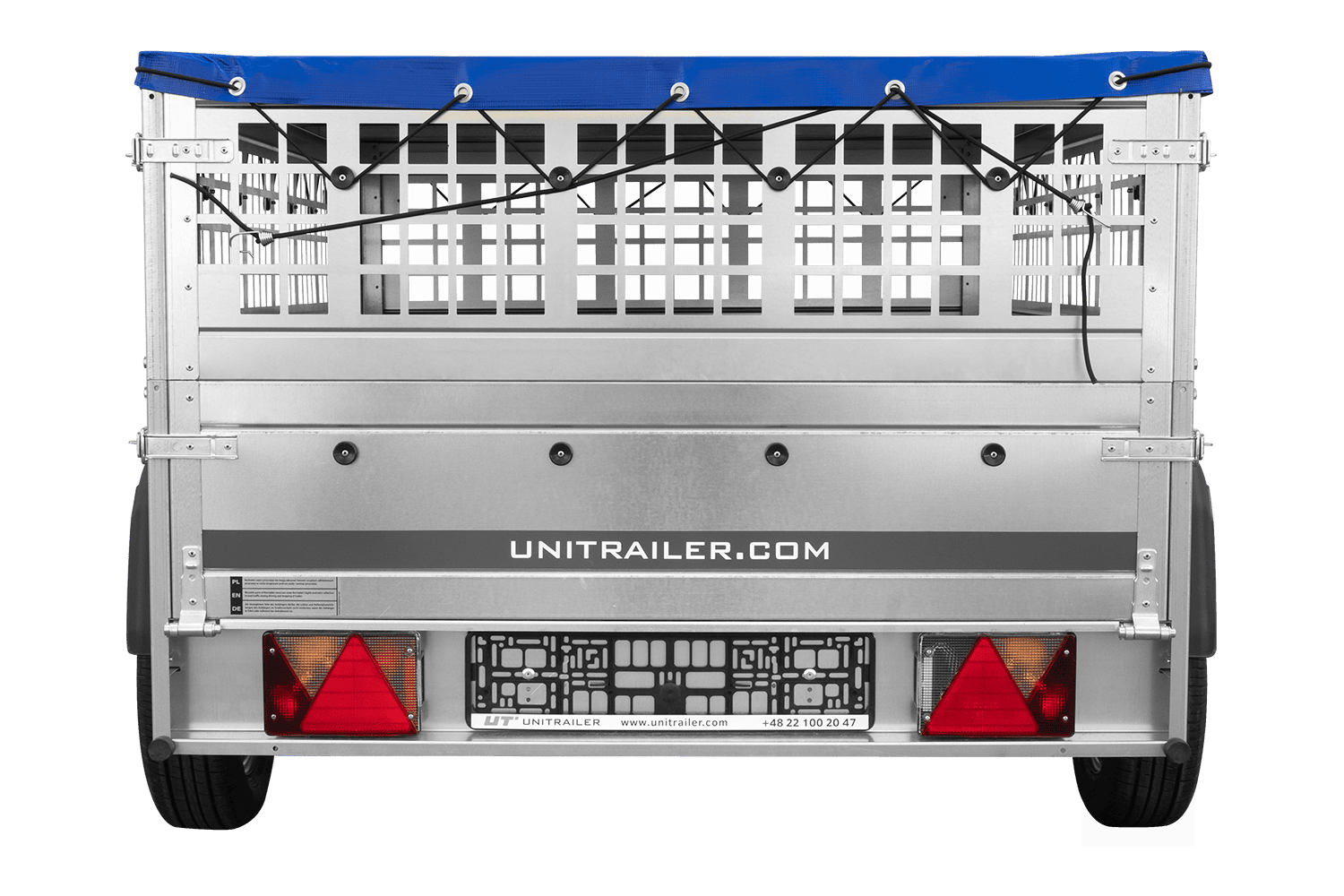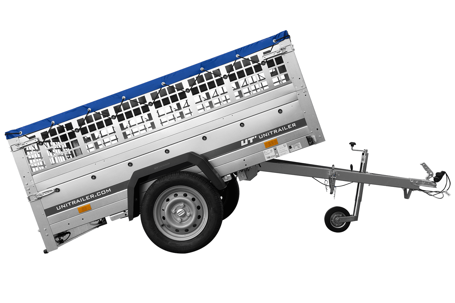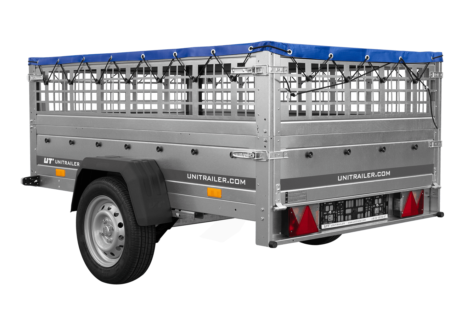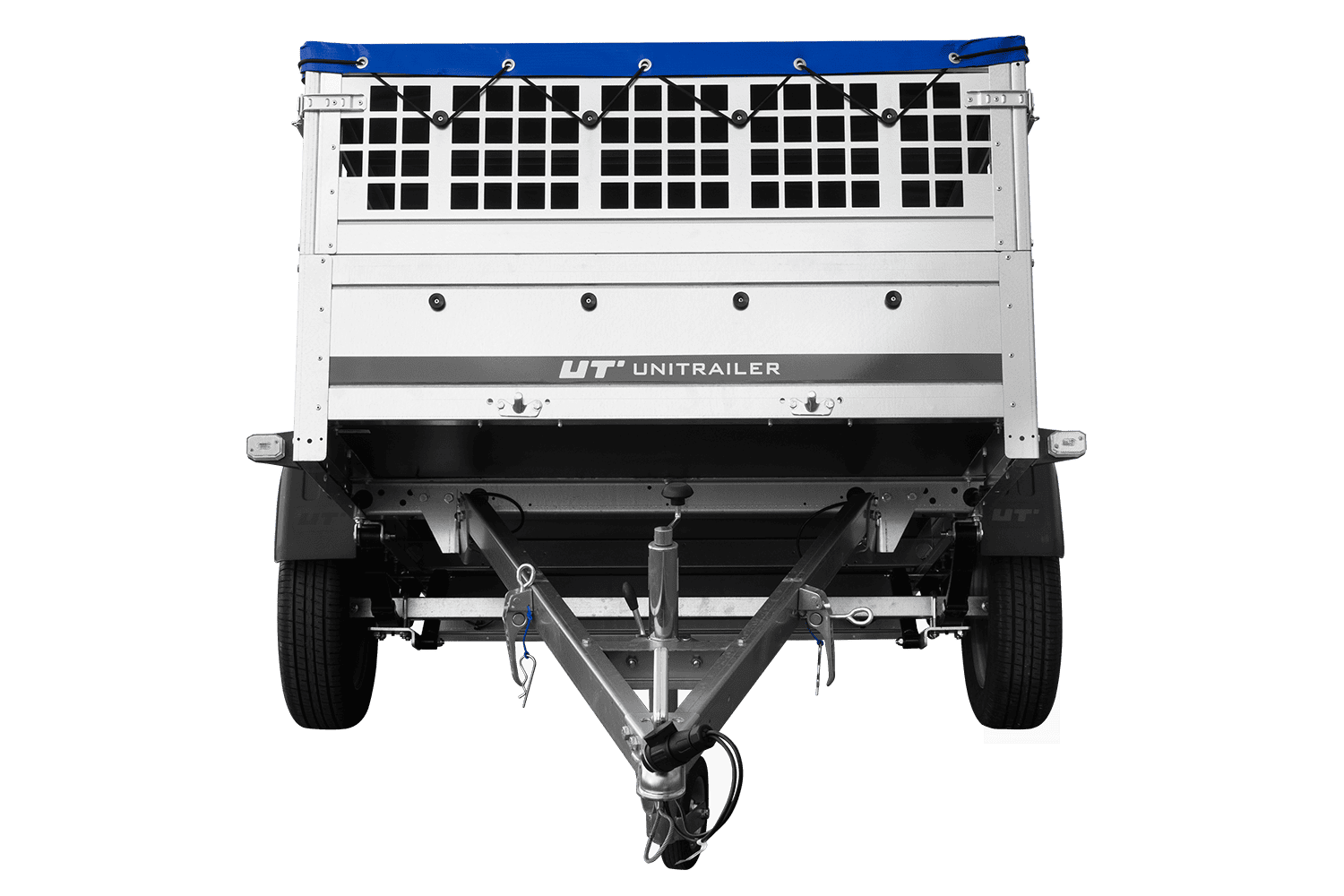 - De UNITRAILER Garden 201/R KIPP met gaaswanden, H-O frame en blauwe afdekking is een duurzame en functionele autotrailer met vering. Hij combineert een grote capaciteit met een robuuste constructie en garandeert veilig vrachtvervoer.