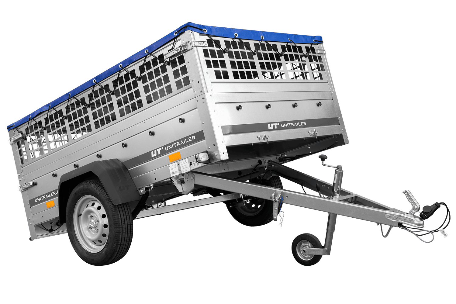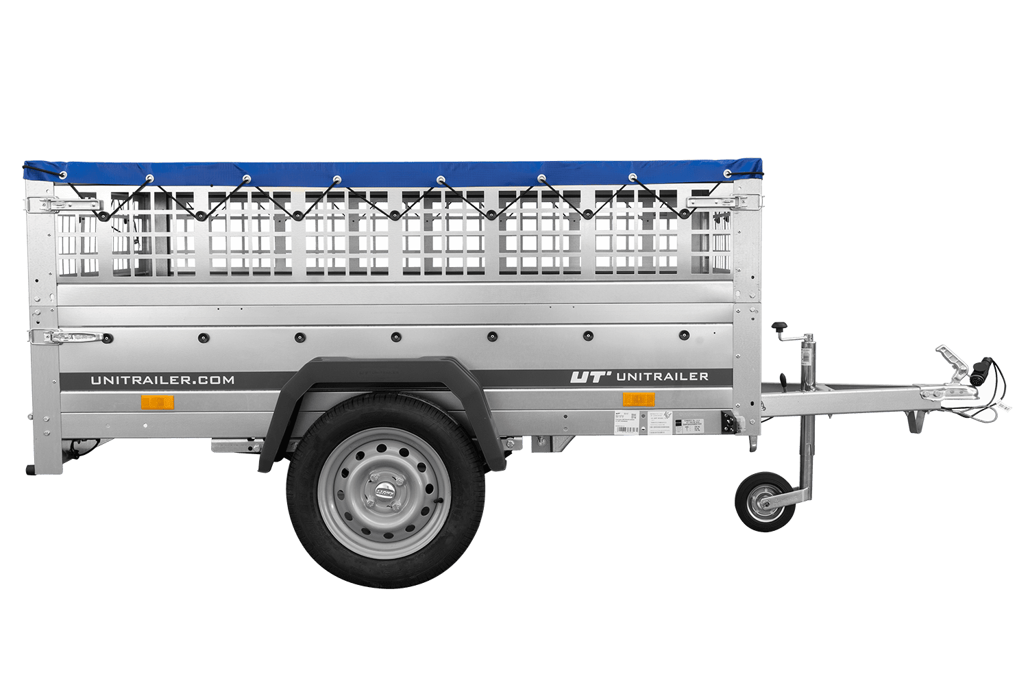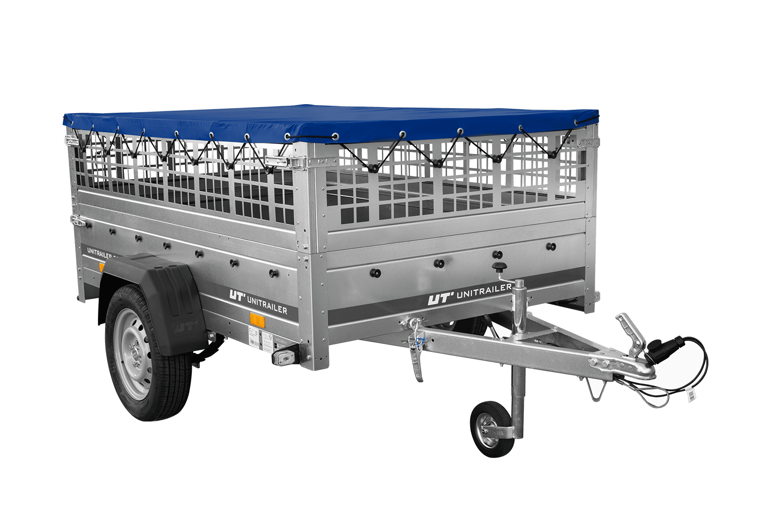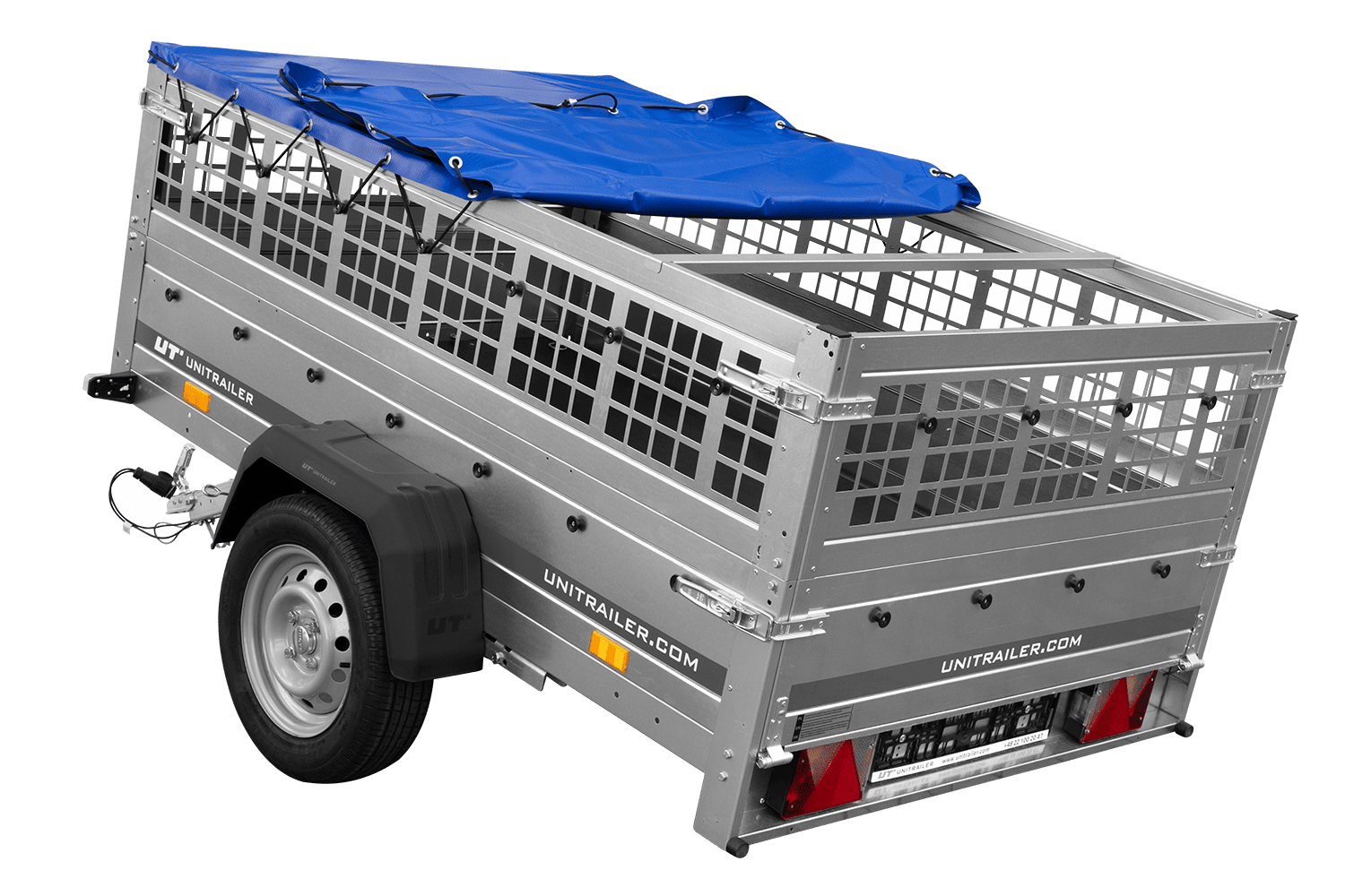 - De UNITRAILER Garden 201/R KIPP met gaaswanden, H-O frame en blauwe afdekking is een duurzame en functionele autotrailer met vering. Hij combineert een grote capaciteit met een robuuste constructie en garandeert veilig vrachtvervoer.