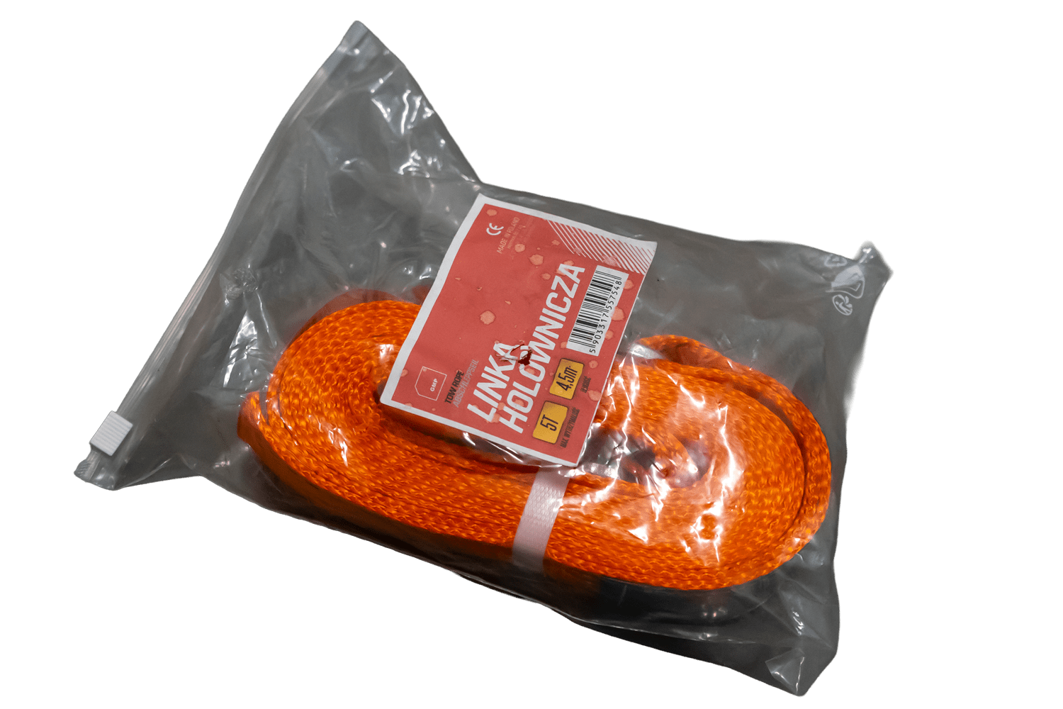 De oranje UNITRAILER sleepband met haken is een betrouwbare accessoire voor het slepen van personenauto's, bestelwagens en lichte machines in noodgevallen . De band is gemaakt van duurzaam synthetisch bandmateriaal, 4,5 meter lang en 50 mm breed , wat zorgt voor voldoende stevigheid. De band is aan beide zijden voorzien van stevige metalen veiligheidshaken . Het maximale trekvermogen is 5 ton (5.000 kg) , waardoor de meeste standaardvoertuigen veilig en effectief kunnen worden gesleept.