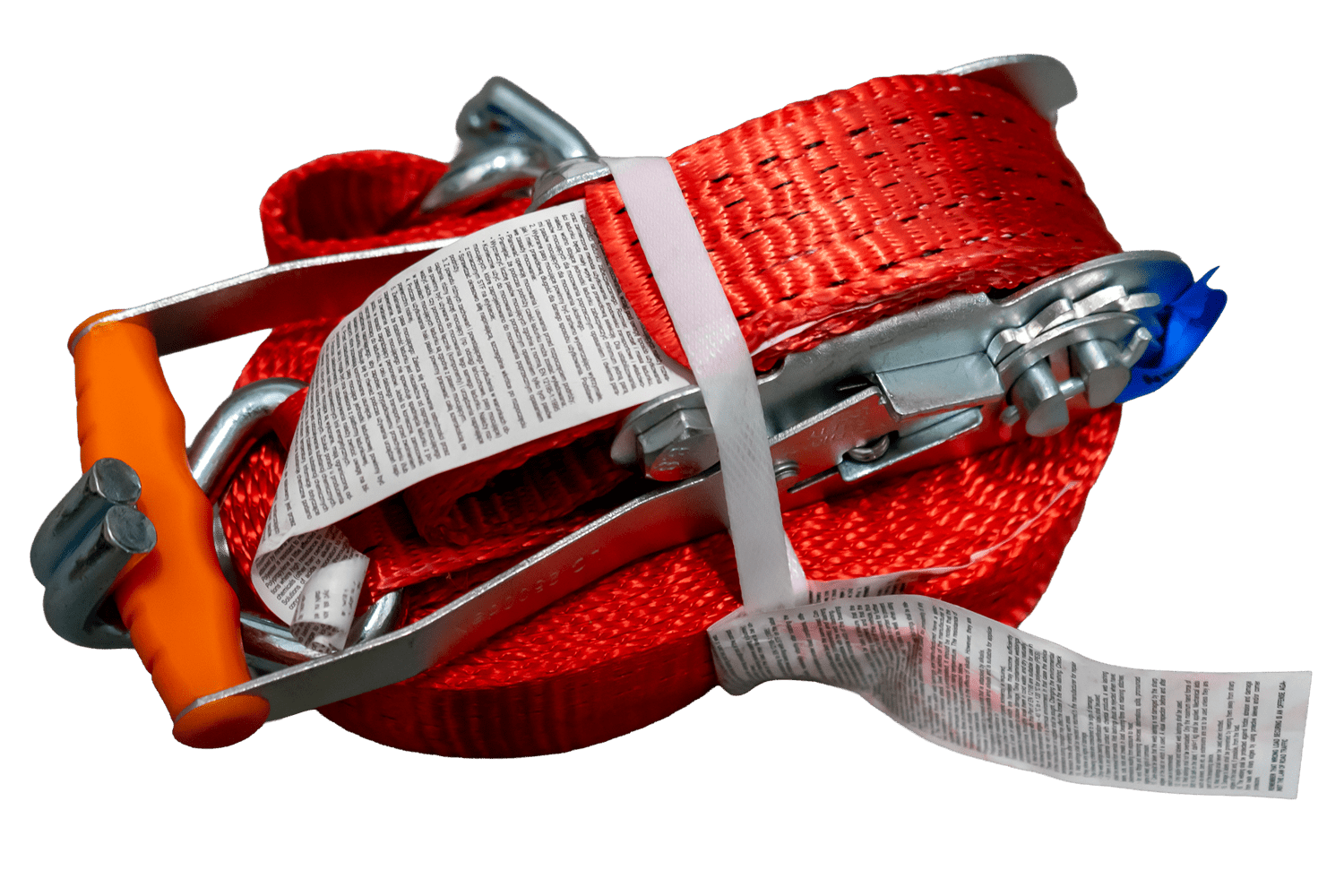 De rode HILLS ratelspanband bestaat uit twee delen: een korter deel met ratel en haak, en een langer deel met een spanband en haak. De totale lengte van de spanband, inclusief de spanband en gesp, is 8 meter, wat voldoende is voor het vastzetten van grotere ladingen. De 50 mm brede spanband zorgt voor voldoende druk. De spanband heeft een robuuste spankracht tot 5 ton (5000 daN), waardoor hij geschikt is voor het vastzetten van zwaardere ladingen.