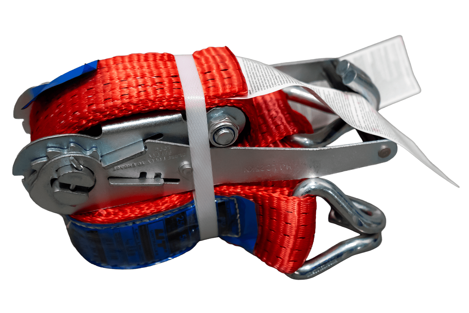 De rode HILLS ratelspanband bestaat uit twee delen: een korter deel met ratel en haak, en een langer deel met spanband en haak. De totale lengte van de spanband, inclusief spanband en gesp, is 4 meter, wat voldoende is voor het vastzetten van grotere ladingen. De 50 mm brede spanband zorgt voor voldoende druk. De spanband heeft een robuuste spankracht tot 5 ton (5000 daN), waardoor hij geschikt is voor het vastzetten van zwaardere ladingen.