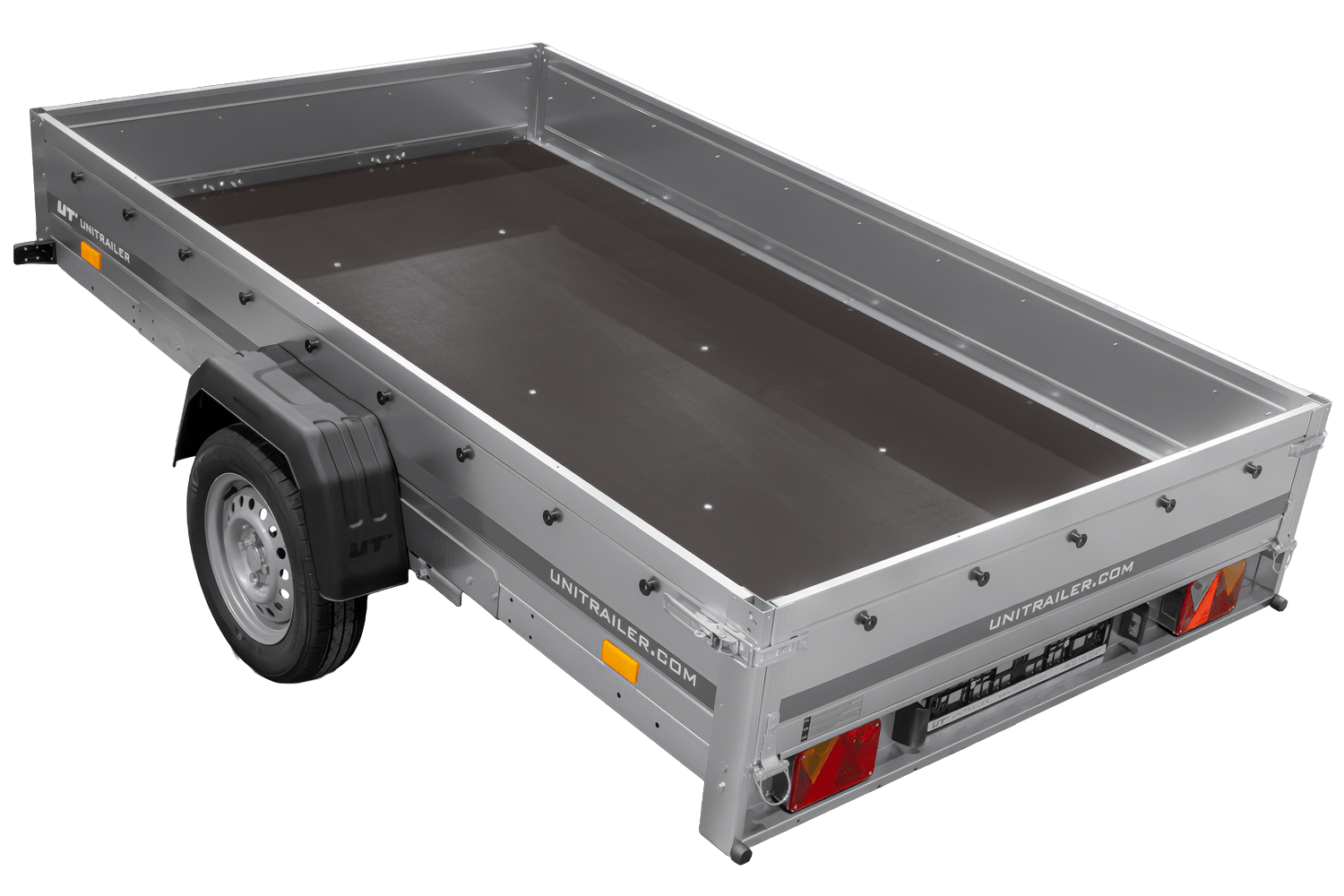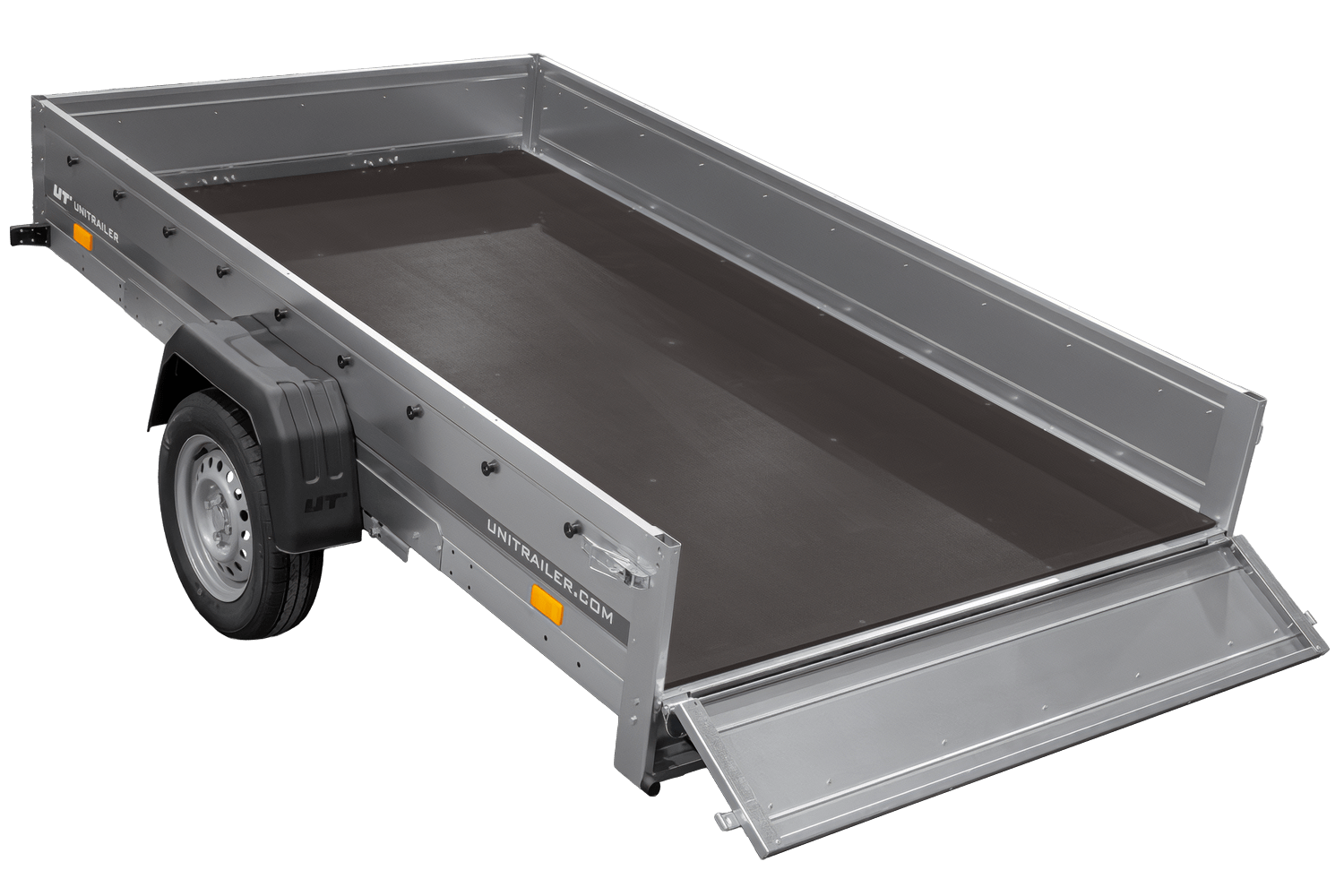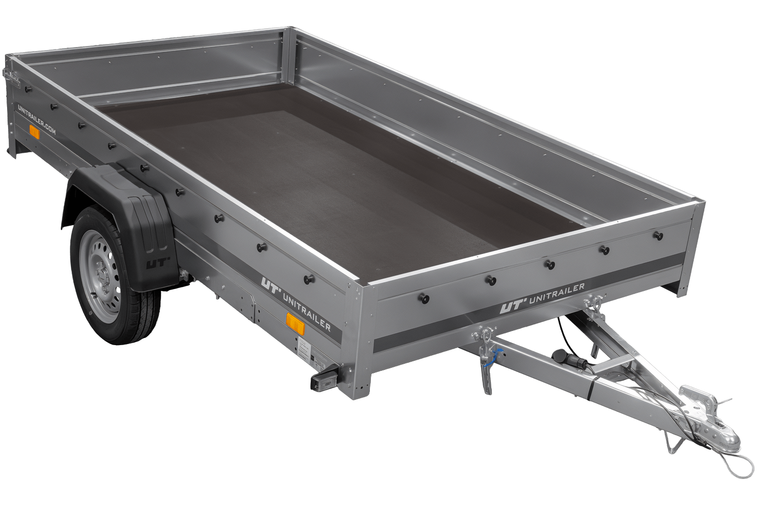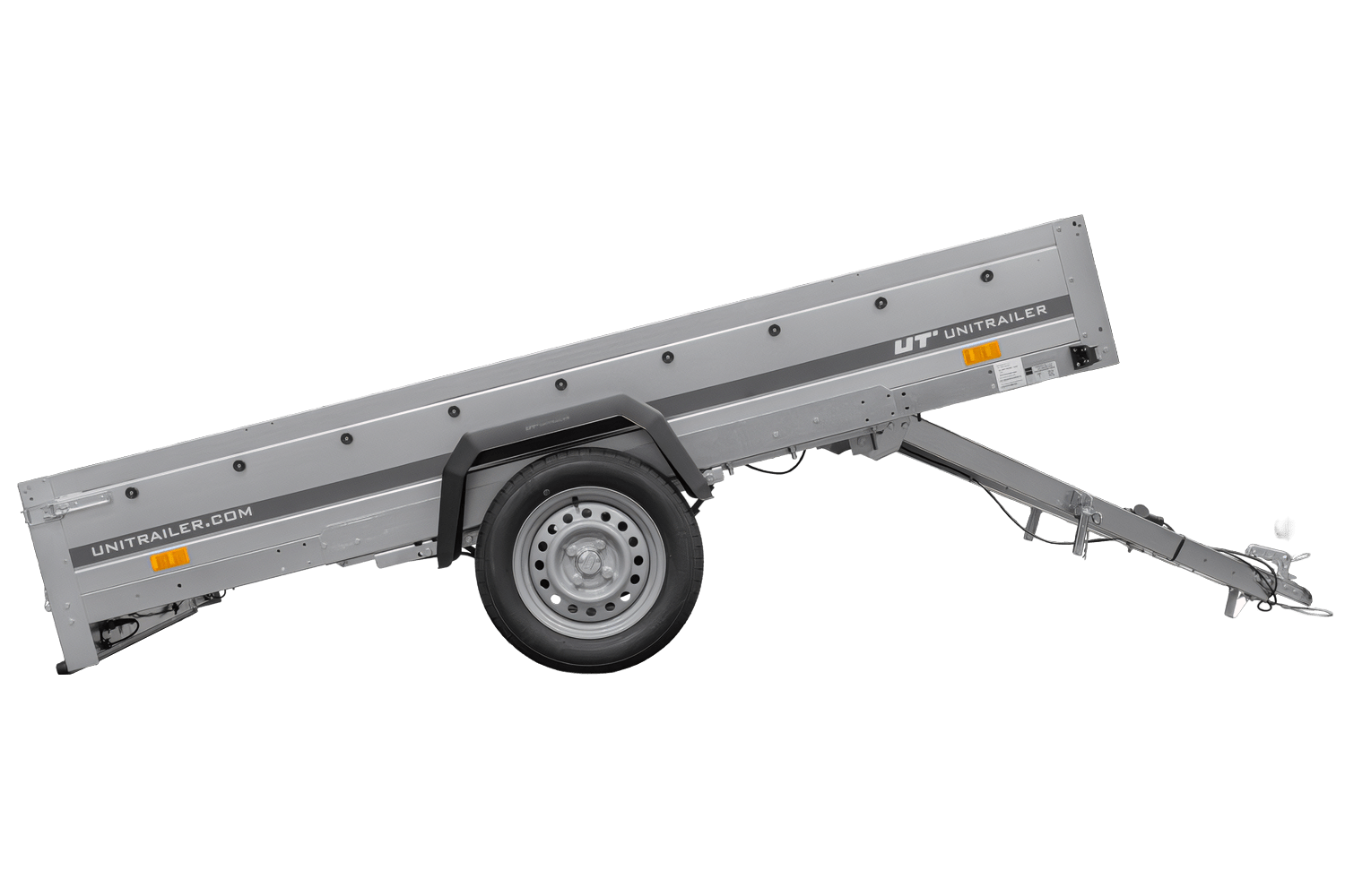 - De UNITRAILER GARDEN 265/R KIPP is een 264x150 cm grote, geveerde aanhanger met schokdempers. Hij biedt een stabiele en comfortabele rit en een grote laadruimte, ideaal voor het vervoer van brede bouwmaterialen, pallets en tuingereedschap.