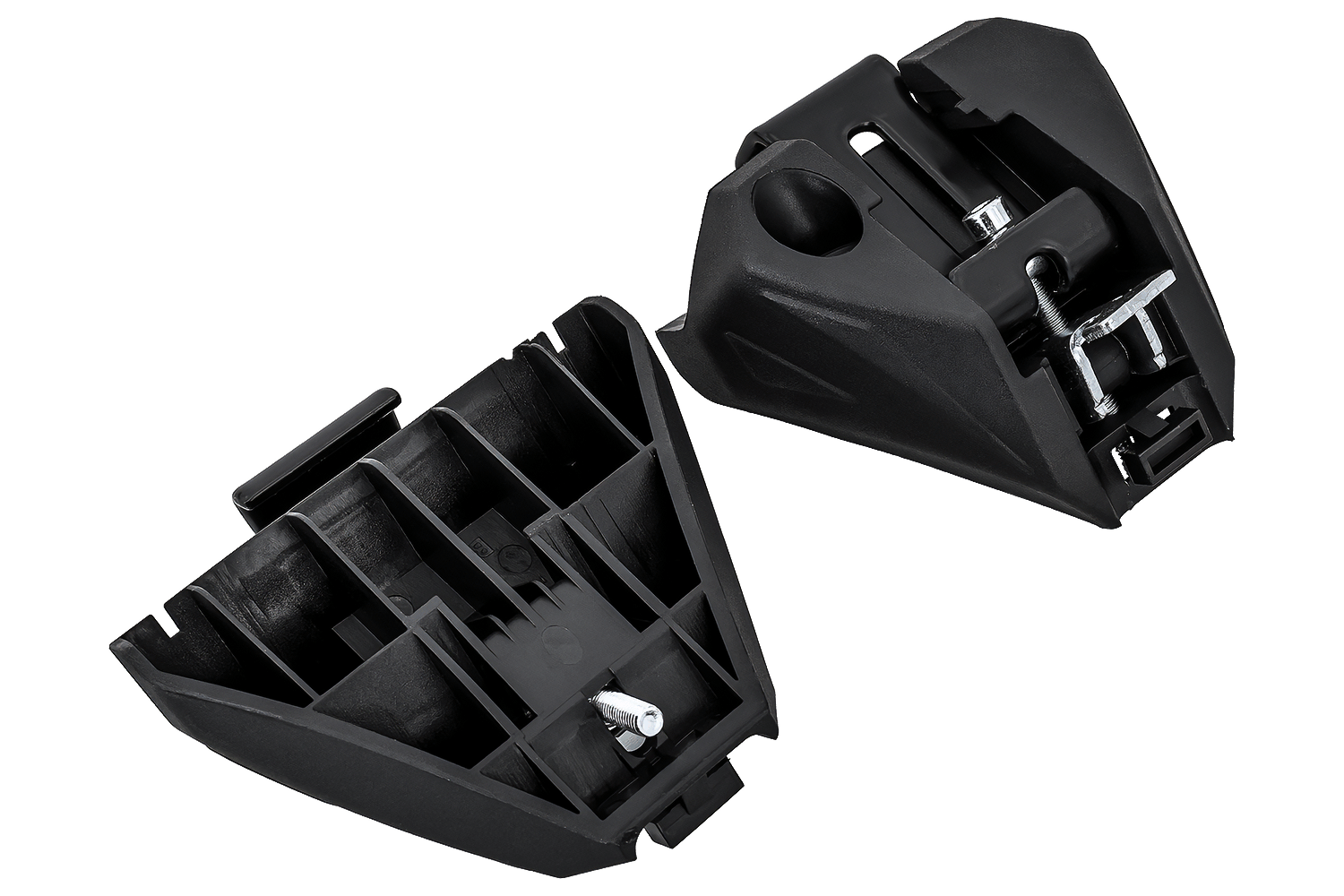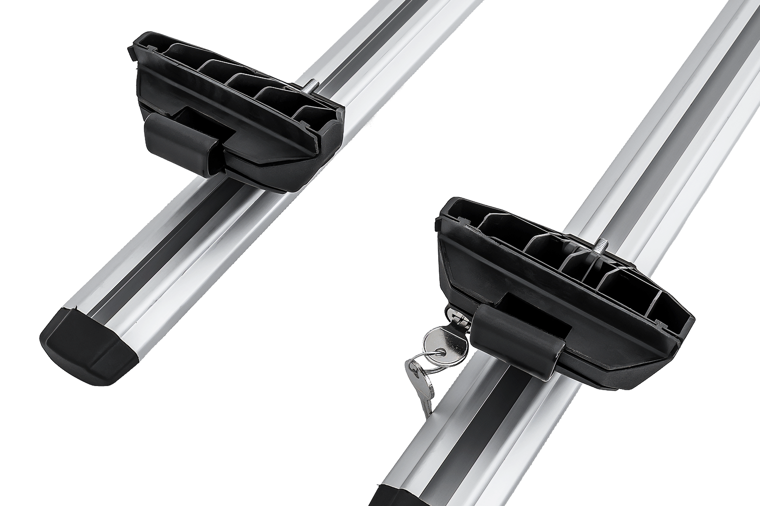 De toegang tot het bovenste montagekanaal wordt beveiligd door sierdoppen aan de uiteinden van de stangen . Deze doppen beschermen de binnenkant van het profiel tegen vuil en verbeteren het algehele uiterlijk van de complete set. De set bevat tevens rubberen afdichtingen voor het montagekanaal , die de lege ruimte in het stangprofiel opvullen nadat de accessoires zijn gemonteerd. Deze oplossing helpt windgeruis te verminderen en verbetert de aerodynamica tijdens het rijden.