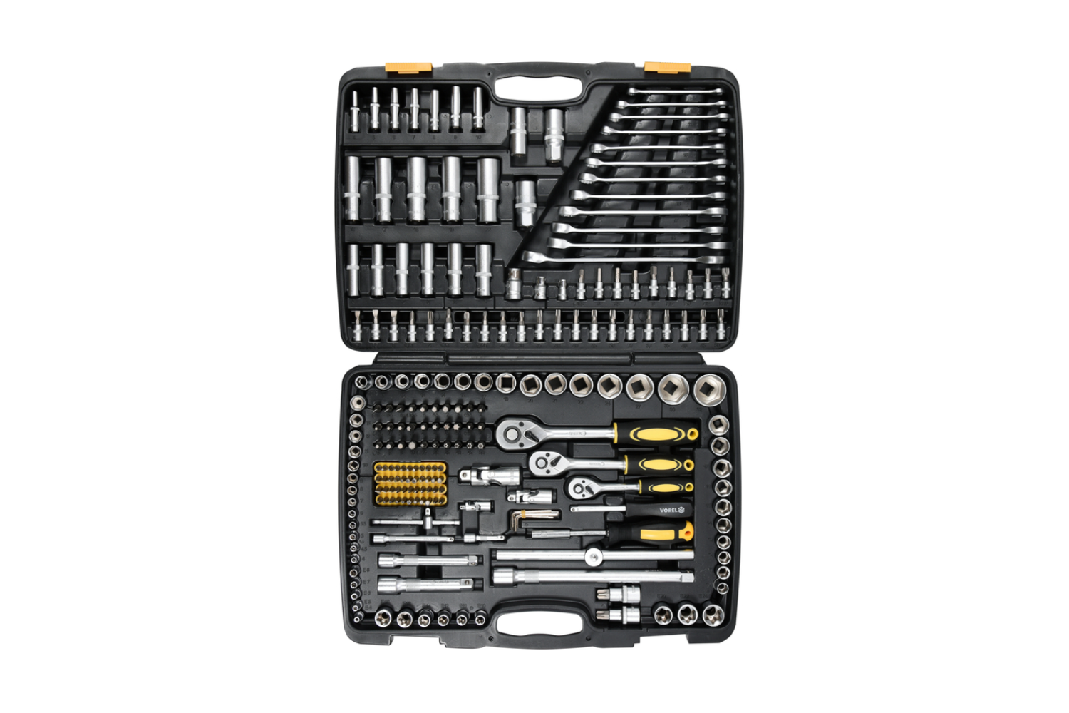 - De VOREL 1/2" 216-delige set is een complete gereedschapskit voor thuis- en mechanische werkzaamheden. De set bevat een ruime keuze aan doppen en een ratelsleutel met 45 tanden. De set wordt geleverd in een duurzame draagkoffer en is ideaal voor reparatie