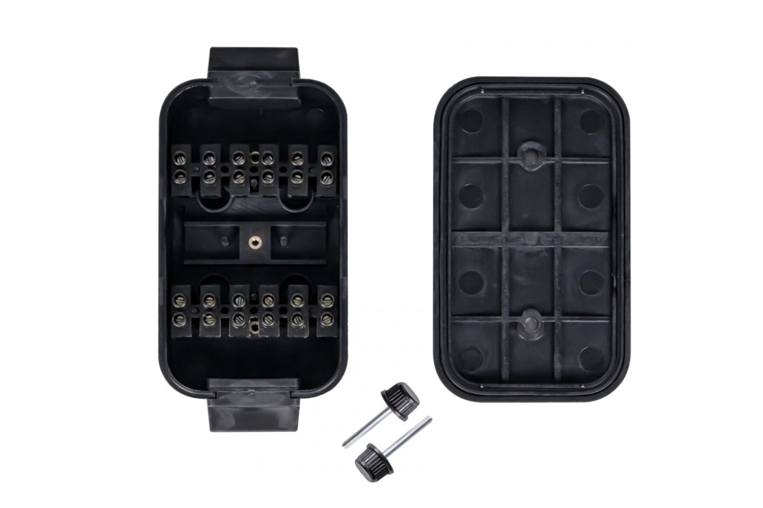 De E4030 12-pins elektrische doos is een robuuste en praktische oplossing voor het organiseren en beveiligen van elektrische aansluitingen in vrachtwagens en bedrijfsvoertuigen. De doos is gemaakt van duurzaam zwart kunststof en is bestand tegen mechanische schade en zware weersomstandigheden. Het eenvoudige ontwerp en de mogelijkheid om meerdere keren te openen, vereenvoudigen onderhoud en systeemuitbreiding aanzienlijk.
