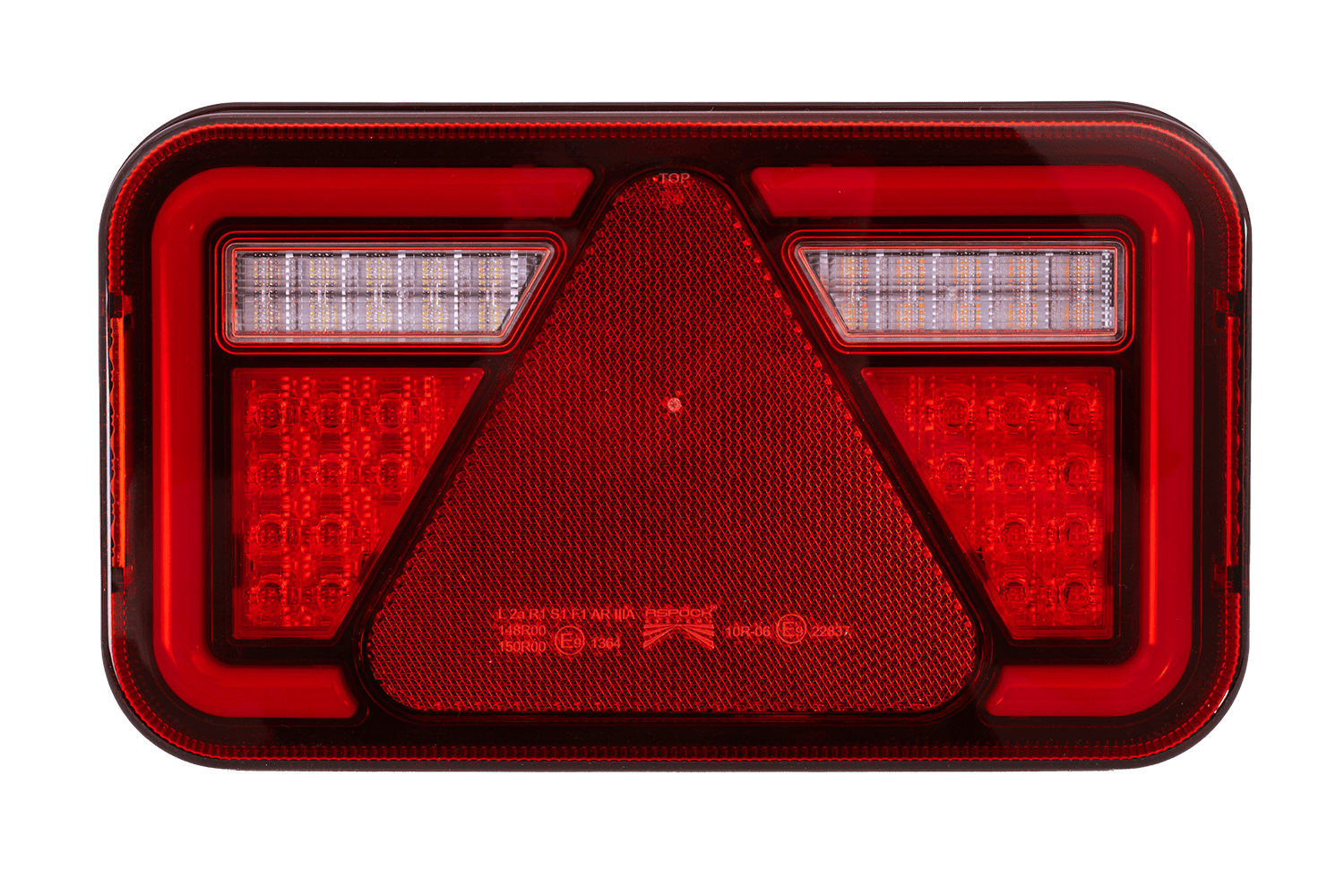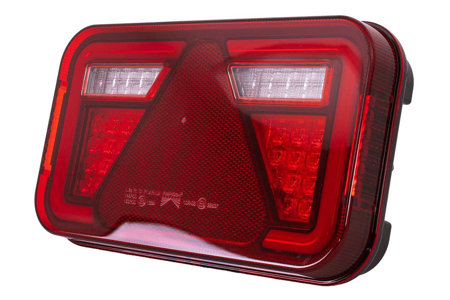 kentekenplaatverlichtingDe lamp heeft zes functies: een positielicht dat de zichtbaarheid van het voertuig tijdens het rijden in het donker verbetert; een richtingaanwijzer waarmee u uw intentie om af te slaan kunt aangeven; een remlicht dat het remmen aangeeft; een achteruitrijlicht dat achteruitrijmanoeuvres vergemakkelijkt door het zicht achter het voertuig te verbeteren; een reflecterende driehoek die de zichtbaarheid van het voertuig vergroot en een kentekenplaatverlichting die de leesbaarheid van het kenteken in het donker garandeert.