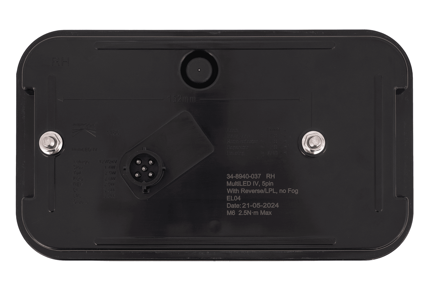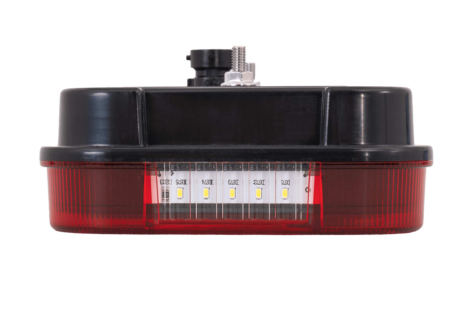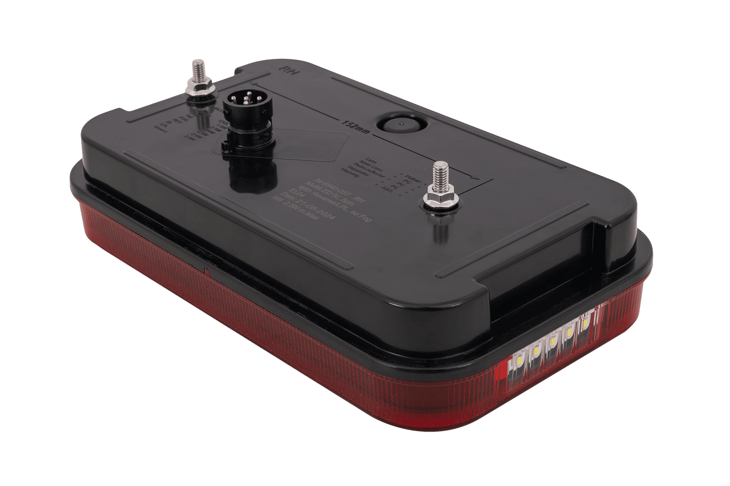 - Het MULTILED IV ASPÖCK achterlicht is ontworpen voor montage aan de rechterkant. Het biedt zes functies: positielicht, remlicht, achteruitrijlicht, richtingaanwijzer, kentekenplaatverlichting en een reflecterende driehoek.