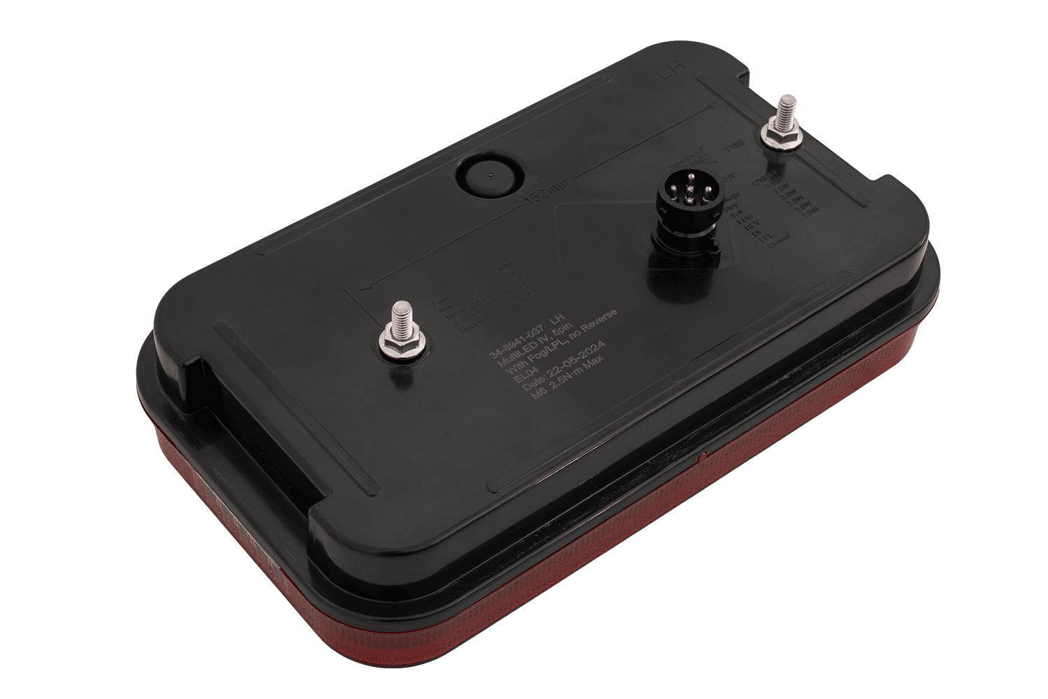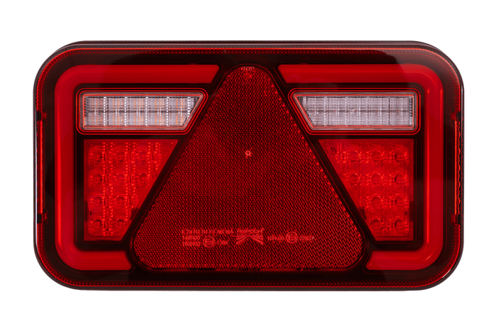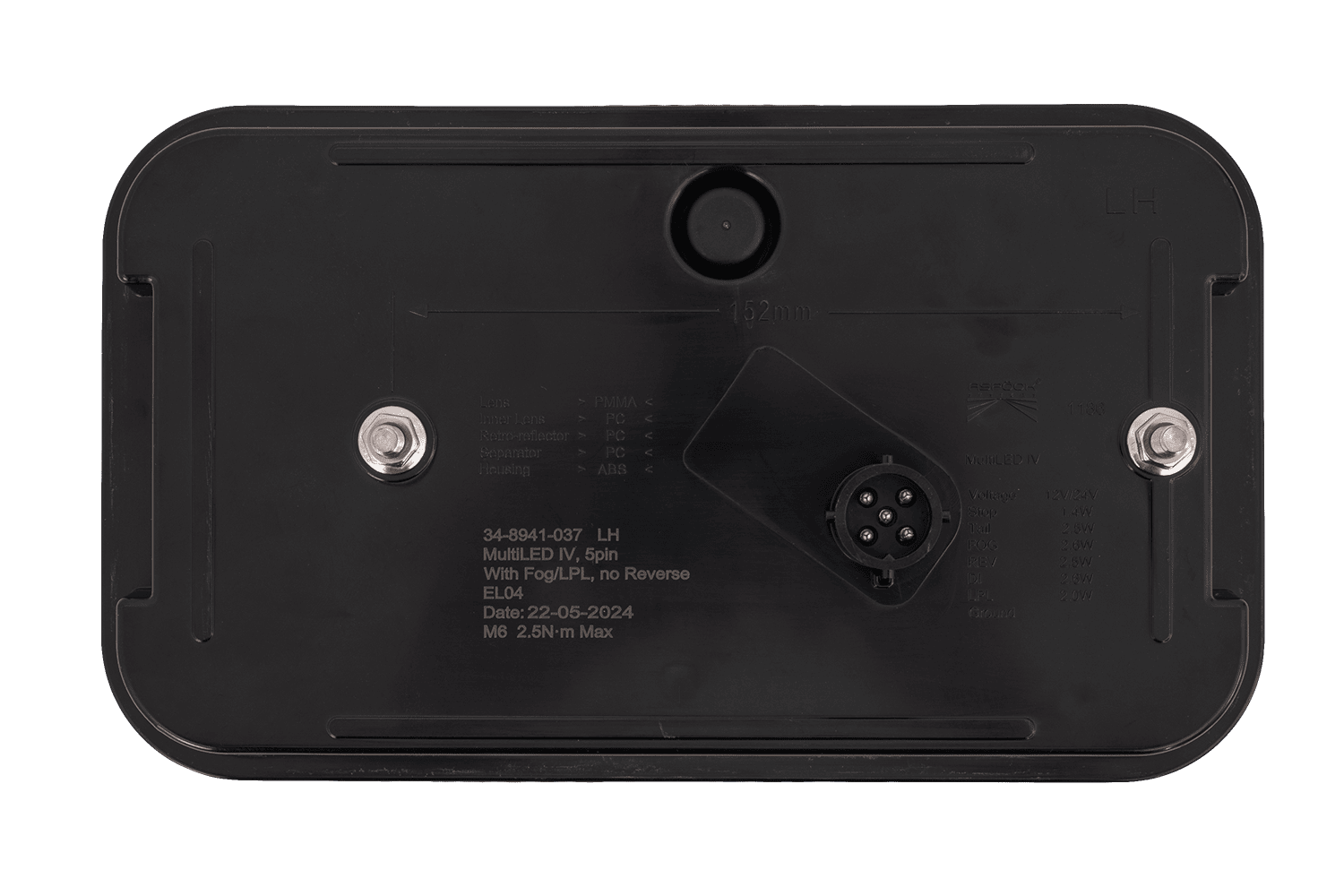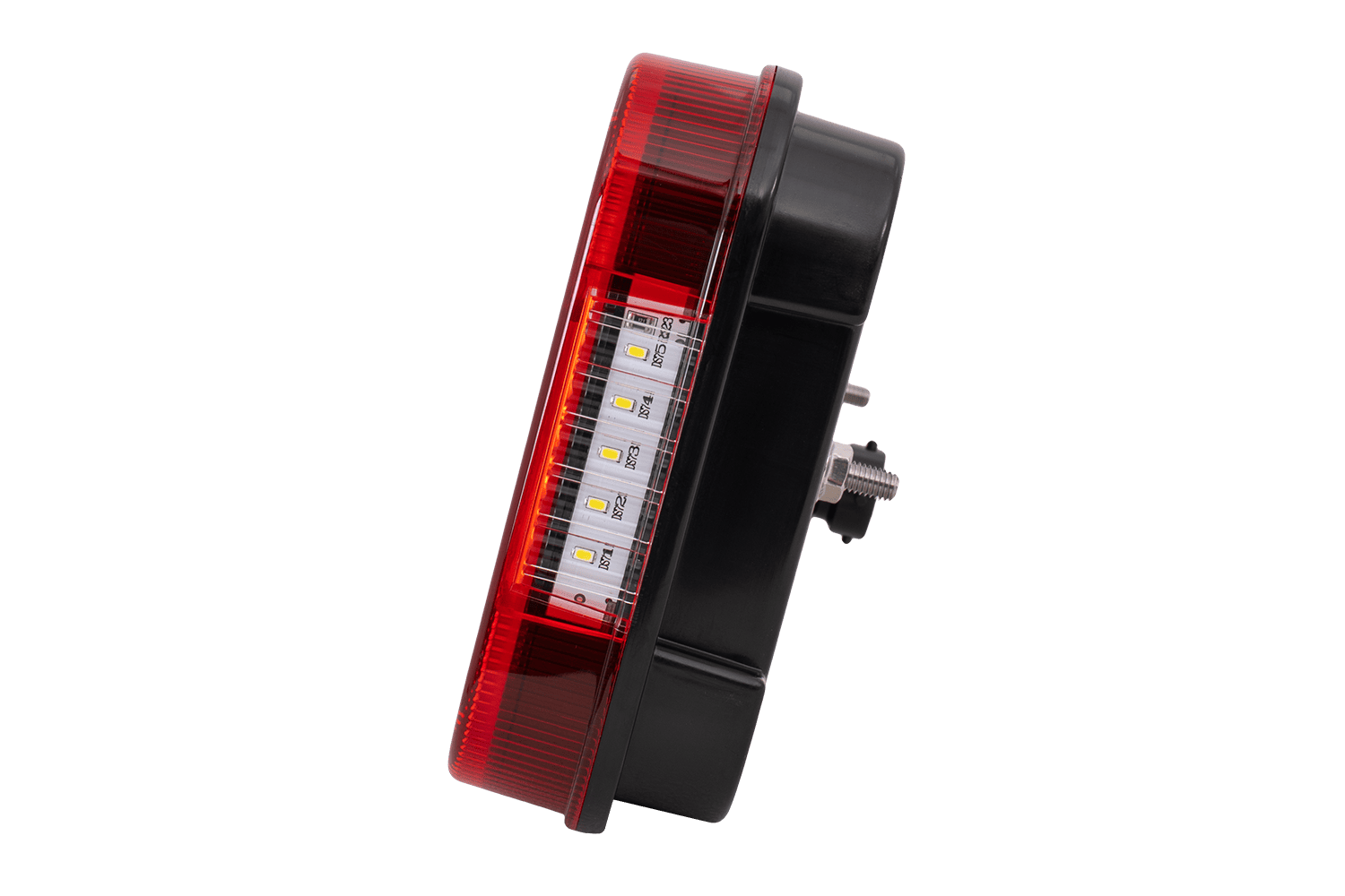 - Het MULTILED IV ASPÖCK achterlicht is ontworpen voor montage aan de linkerkant. Het biedt zes functies: positielicht, remlicht, mistlicht, richtingaanwijzer, kentekenplaatverlichting en een reflecterende driehoek.