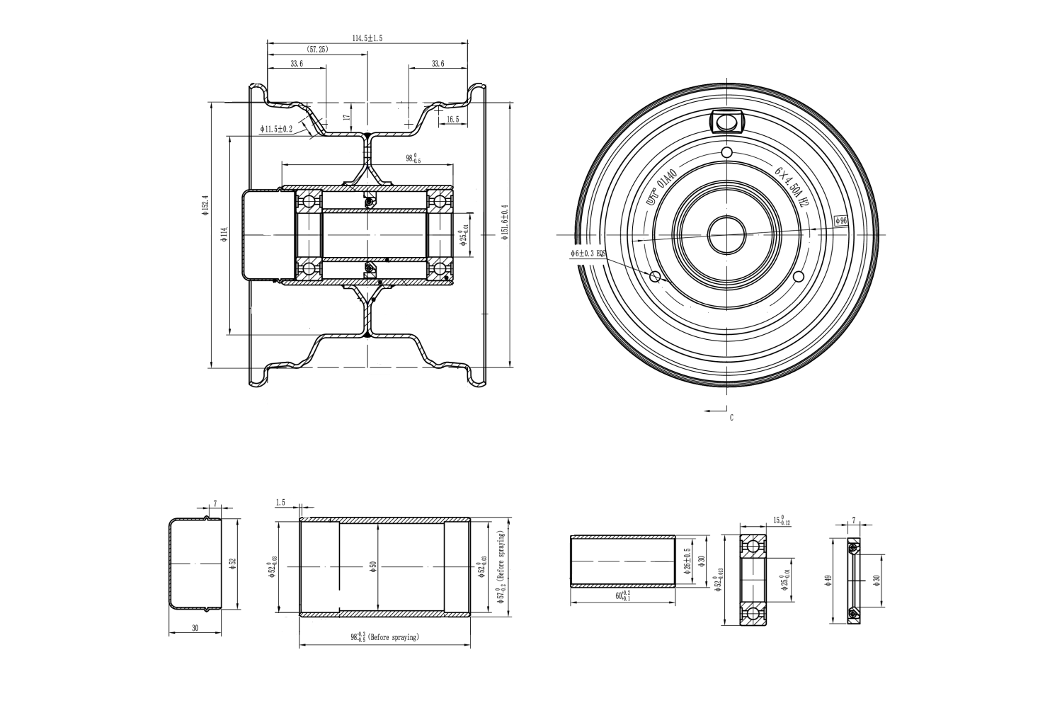 - Deze 4,5×6 H2-velg met 6205-2RS-lagers is ontworpen voor utiliteits- en werkvoertuigen. Hij is perfect voor transport-, magazijn-, platform- en gereedschapskarren, maar ook voor grasmaaiers, tuintractoren en tuinmachines.