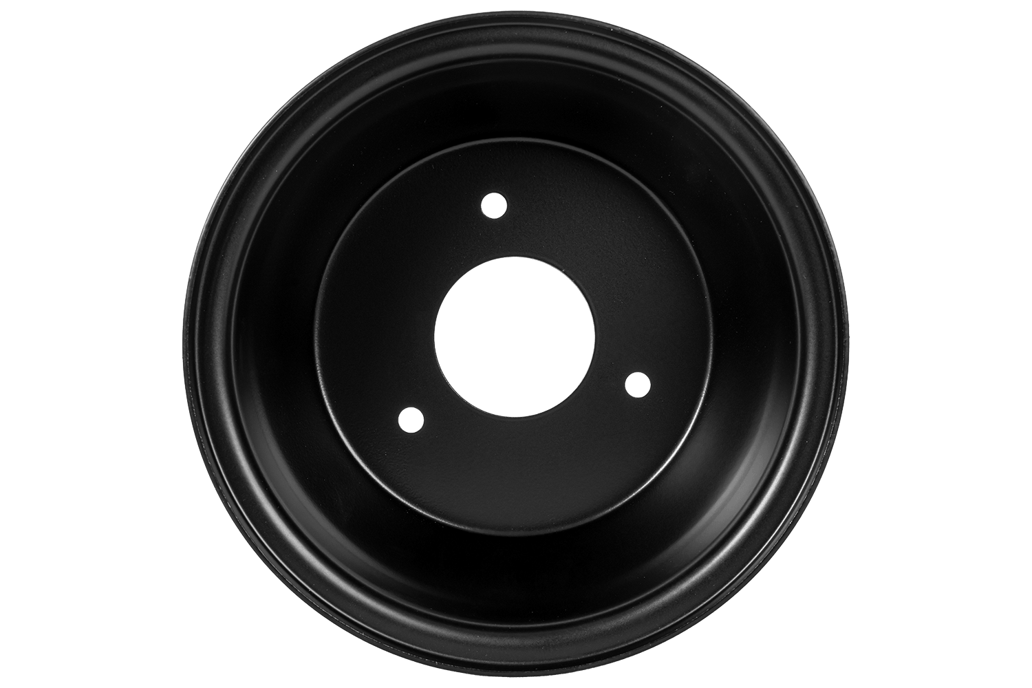 De UNITRAILER 4.5ATx7" ET-1.8 stalen velg in zwart is een robuuste velg, speciaal ontworpen voor wielen die voornamelijk gebruikt worden in lichte aanhangers, transportkarren, tuin- en gemeentemachines en gespecialiseerde utiliteitsvoertuigen. De velg heeft een montagediameter van 7 inch en een breedte van 4,5 inch , wat zorgt voor een stabiele bandmontage en een goede werking van het wiel bij dagelijks gebruik.