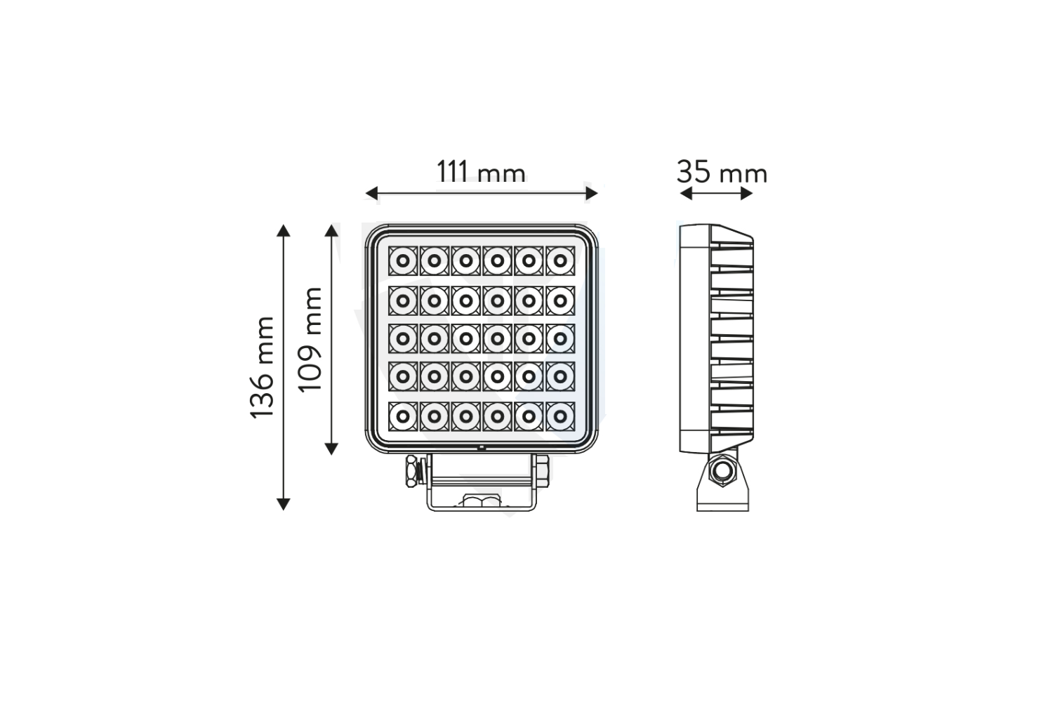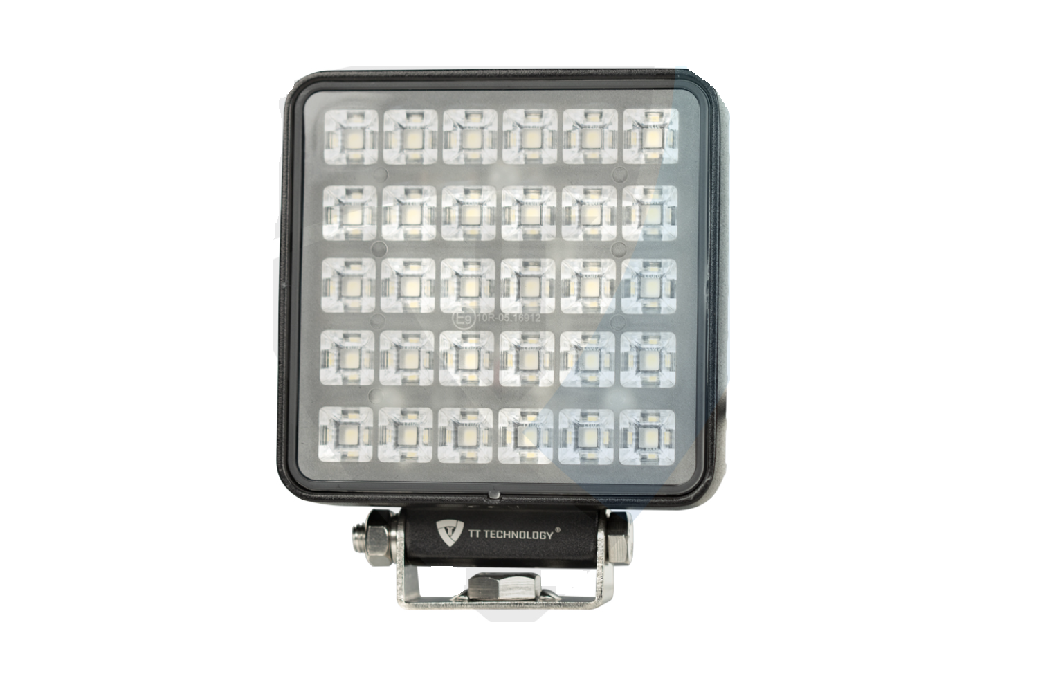 - De TT.13308-W vierkante werklamp van TT TECHNOLOGY heeft een vermogen van 30W en produceert 2400 lumen neutraal wit licht (5700K). Uitgerust met 30 LED's is hij ideaal voor landbouwmachines, bouwmachines en bedrijfsvoertuigen.