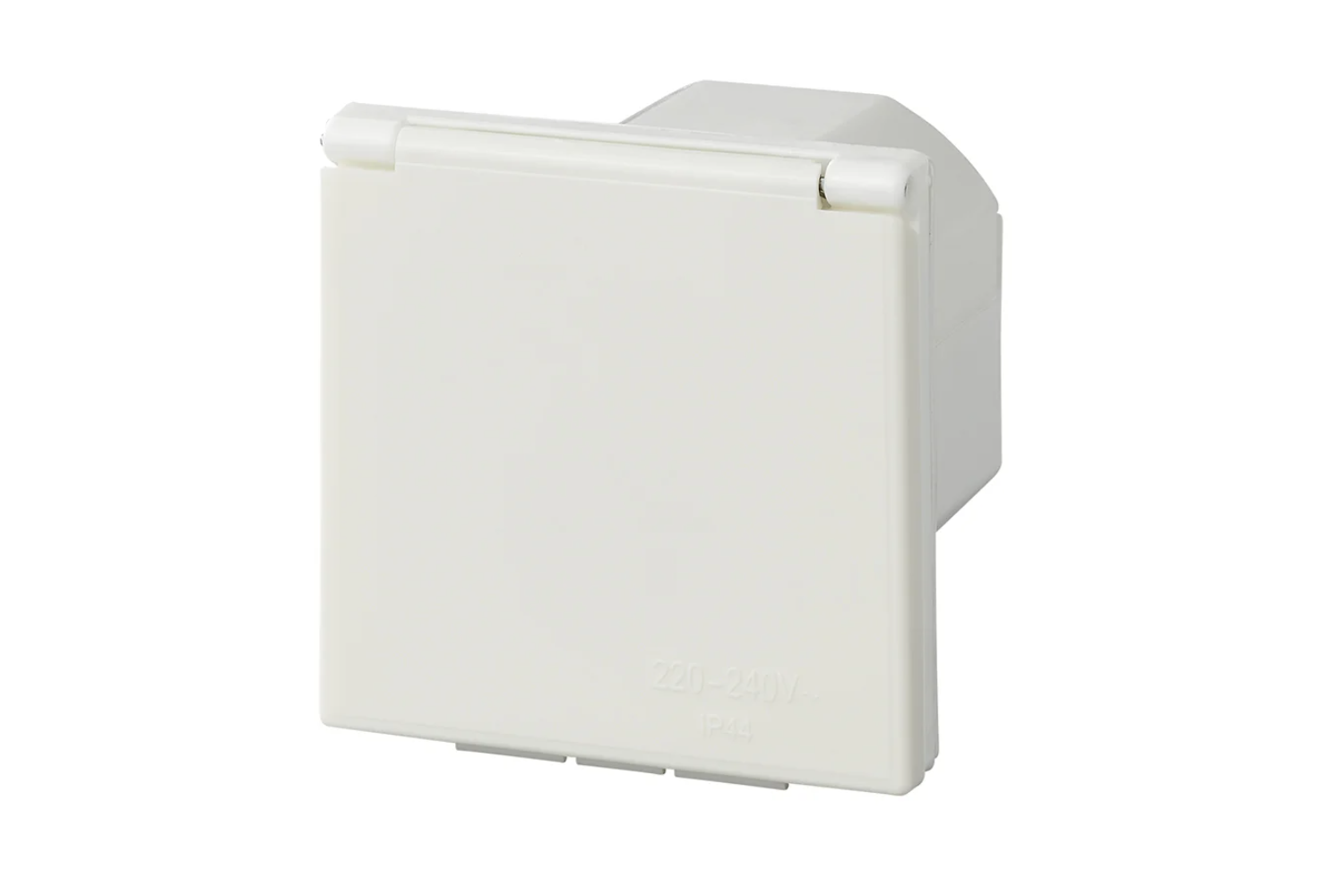 Met een IP44- classificatie is het stopcontact geschikt voor gebruik buitenshuis , in ruimtes die blootgesteld zijn aan vocht en spatten, maar het is niet bedoeld om in water onder te dompelen. De IP44- classificatie betekent dat het stopcontact beschermd is tegen het binnendringen van vaste voorwerpen met een diameter groter dan 1 mm (bijv. klein gereedschap of draden) en tegen waterspray vanuit elke richting. Dit maakt het veilig voor gebruik buitenshuis en in ruimtes die blootgesteld zijn aan vocht, maar het is niet geschikt om in water onder te dompelen of te gebruiken in een krachtige waterstraal.