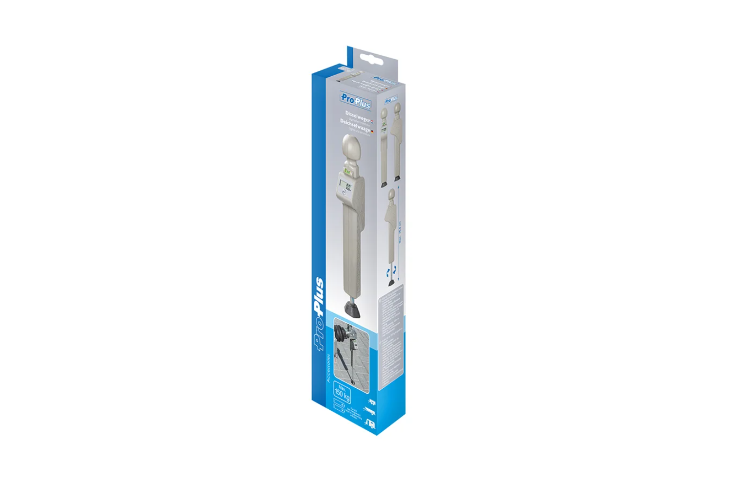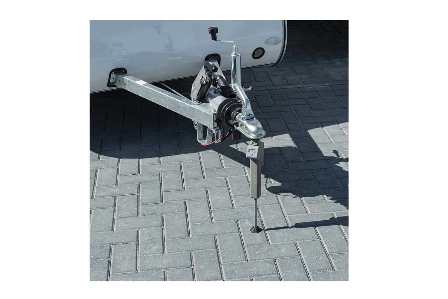 - Digitale disselbelastingsweegschaal met een maximaal draagvermogen van 150 kg. Hiermee kunt u snel en nauwkeurig de verticale belasting controleren, wat de stabiliteit en veiligheid tijdens het rijden met een aanhanger verbetert.