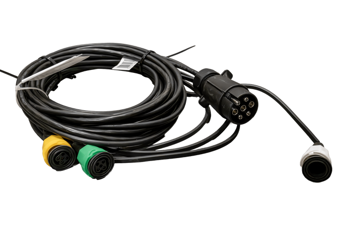 Het MANTES-elektrische systeem is een praktische en betrouwbare oplossing voor autoaanhangers. De 4,7 meter lange hoofdkabel met een doorsnede van 0,5 mm² is voorzien van een standaard 7-polige stekker , waardoor universele compatibiliteit met de meeste voertuigen gegarandeerd is.
