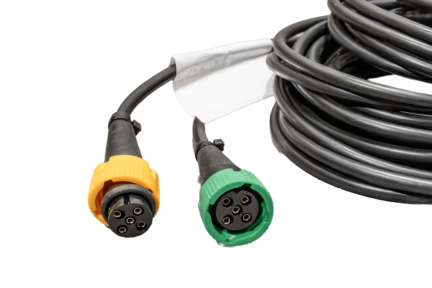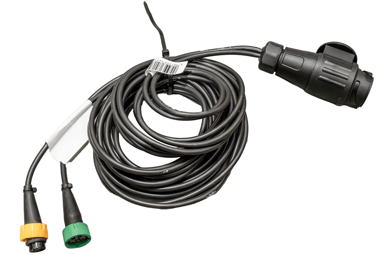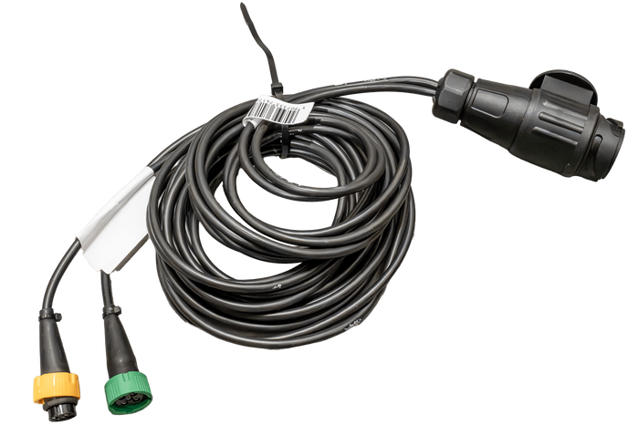 De kabelboom is voorzien van twee 5-pins bajonetconnectoren voor het aansluiten van de achterlichten. Het bajonetsysteem zorgt voor een snelle en veilige installatie, waardoor het risico op onbedoelde loskoppeling tijdens het rijden wordt geëlimineerd. Het ontwerp van de connector garandeert een waterdichte verbinding en beschermt de contacten tegen corrosie, wat een langdurige en probleemloze werking van het gehele verlichtingssysteem van de trailer garandeert.