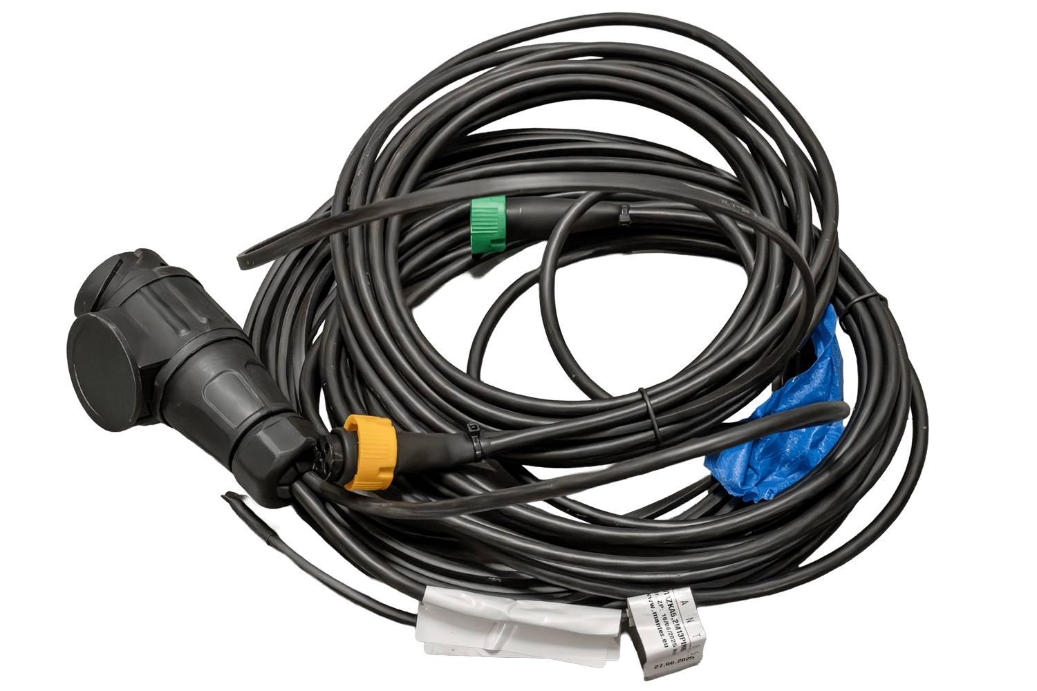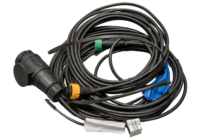 - Het MANTES OUTLET-elektrische systeem is voorzien van een 5,2 meter lange kabel met een 13-polige stekker. De kabelboom zorgt voor een correcte werking van de verlichting in vrachtwagens en opleggers, terwijl 5-polige bajonetconnectoren een snelle en veil