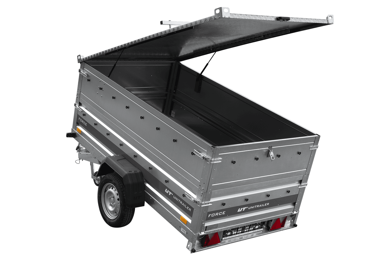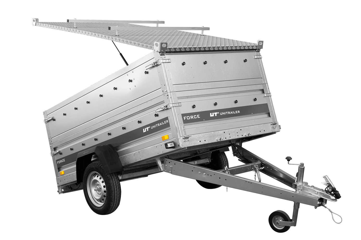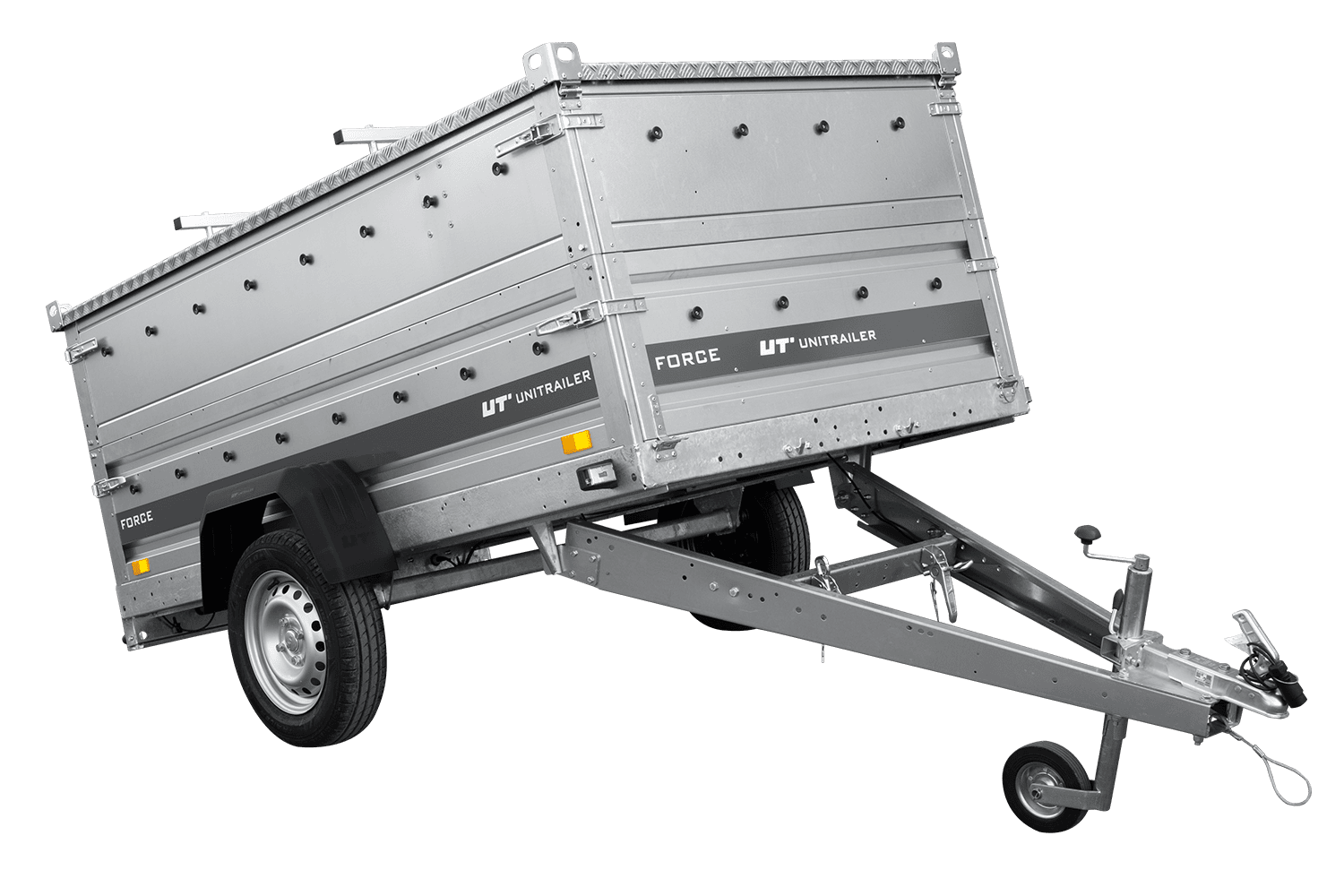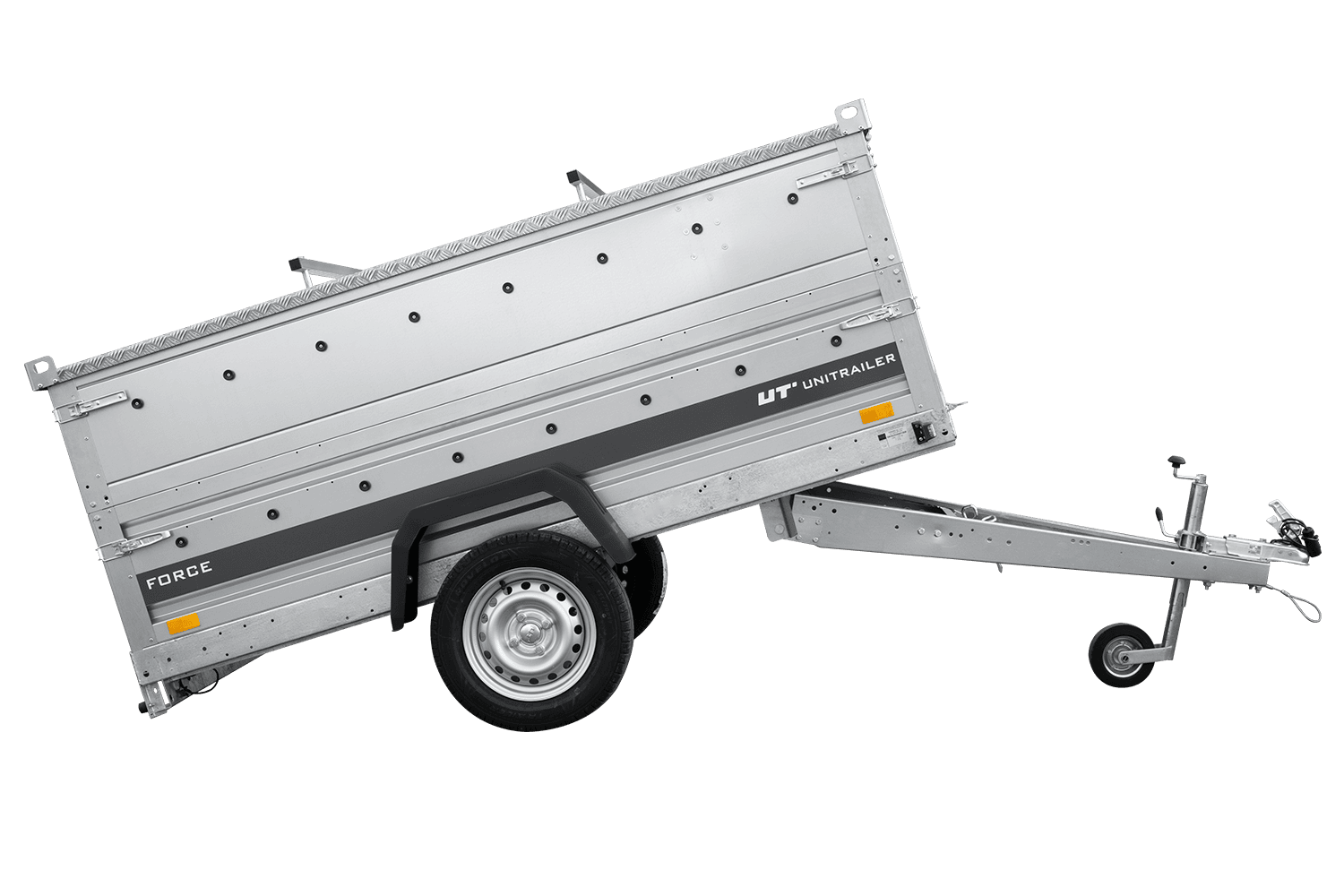 Alle vier zijden zijn afneembaar, wat de gebruiker talloze mogelijkheden biedt. De Unitrailer Force is een multifunctioneel transportmiddel.