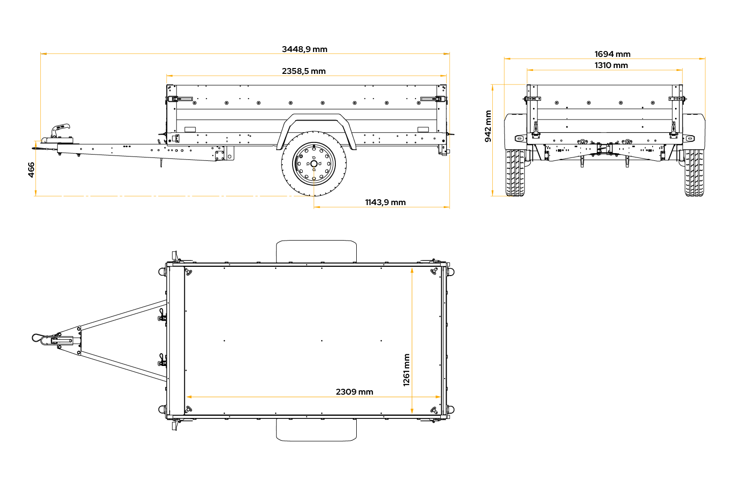 Het maximaal toelaatbare totaalgewicht (GVWR) van 750 kg maakt het mogelijk om de aanhanger te gebruiken met een rijbewijs categorie B.