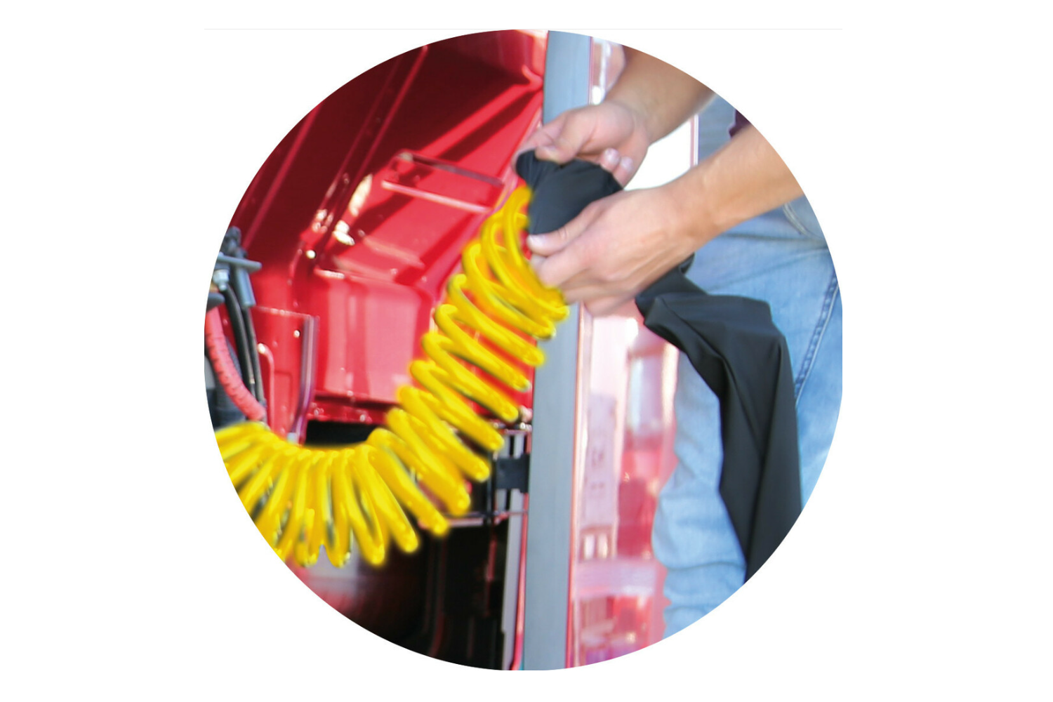 De gele Truck-Tights kabelhoes van LAMPA is een flexibele beschermhoes die is ontworpen om kabels en spiraalslangen in vrachtwagens te ordenen en te beschermen. Hij voorkomt effectief dat kabels in de knoop raken , waardoor de esthetiek en de veiligheid van de installatie tussen de trekker en de trailer worden verbeterd.