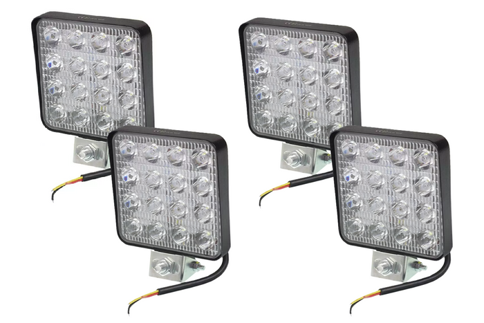 De set van vier EL042 werklampen van HERMON is een veelzijdige LED- lichtbron, ontworpen voor gebruik in veeleisende omgevingen. Ze zijn ideaal voor gebruik in bedrijfsvoertuigen, landbouw-, bouw- en offroadmachines, maar ook op boten en als extra verlichting voor bussen en vrachtwagens. De lampen hebben een afmeting van 107 mm breed, 107 mm hoog en 25 mm diep en werken binnen een spanningsbereik van 10-36 V. De behuizing is gemaakt van duurzame materialen, waardoor ze bestand zijn tegen schokken en mechanische beschadigingen in zware werkomstandigheden.