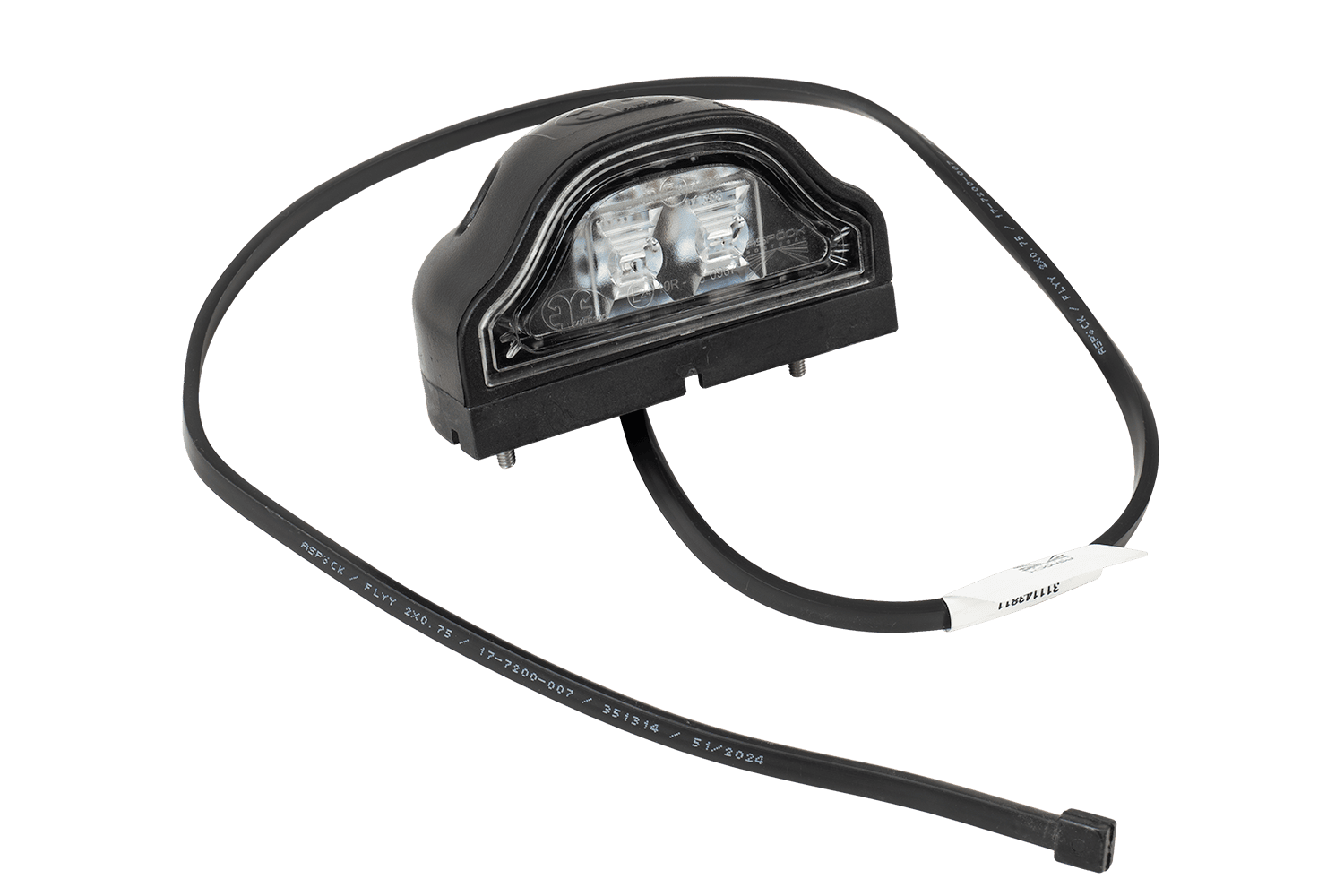 Nieuwe originele kentekenplaatverlichting voor aanhangers die door de fabrikant Aspöck wordt geproduceerd. De lamp heeft de 0,8 m draad.