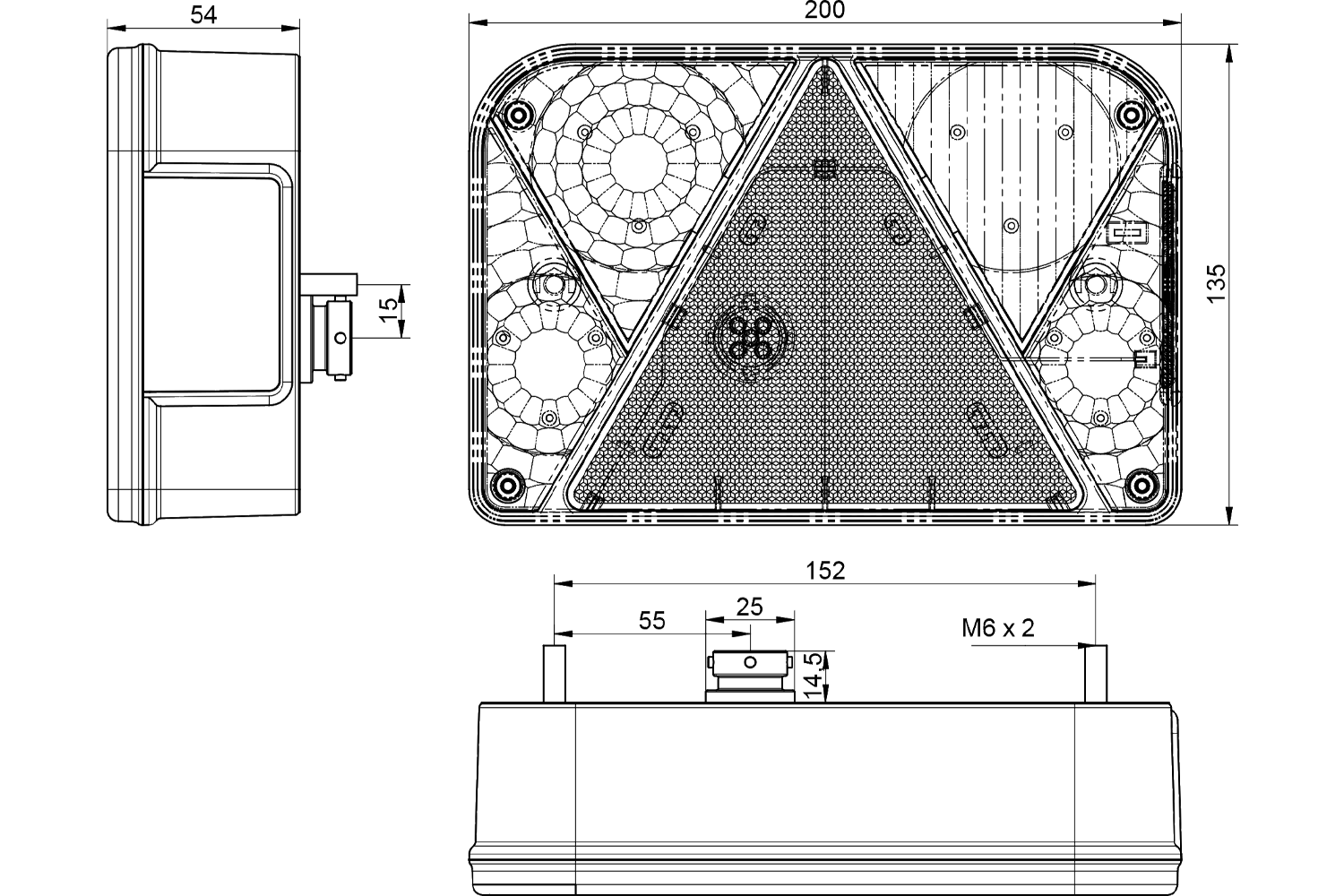 Het DPT35 achterlicht van DOBPLAST is bedoeld voor montage aan de linkerkant van het voertuig en heeft de volgende afmetingen: breedte 200 mm, hoogte 135 mm, diepte 54 mm . Uitgerust met een 5-polige bajonetaansluiting , waardoor een eenvoudige en snelle installatie mogelijk is in aanhangwagens, bussen en takelwagens .