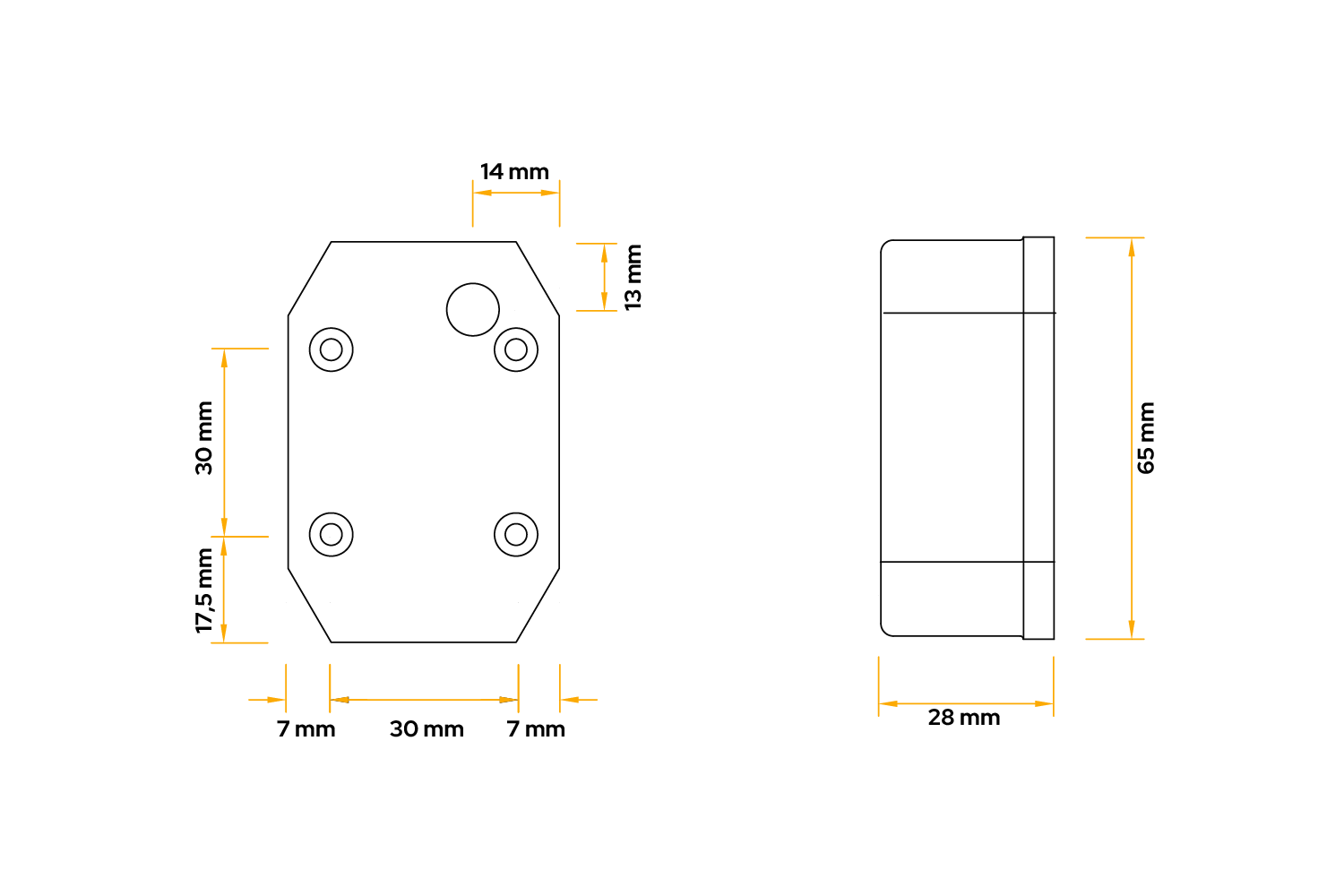 De FLEXIPOINT I markeringslamp van ASPÖCK is ontworpen voor montage aan zowel de linker- als de rechterzijde van het voertuig en wordt gekenmerkt door de volgende afmetingen: breedte 44 mm, hoogte 65 mm, diepte 28 mm . Uitgerust met een montagebeugel van 100 mm en een platte kabel van 0,5 m , maakt het een eenvoudige en snelle installatie mogelijk en kan het worden gebruikt in bestelwagens, aanhangwagens, opleggers en campers .
