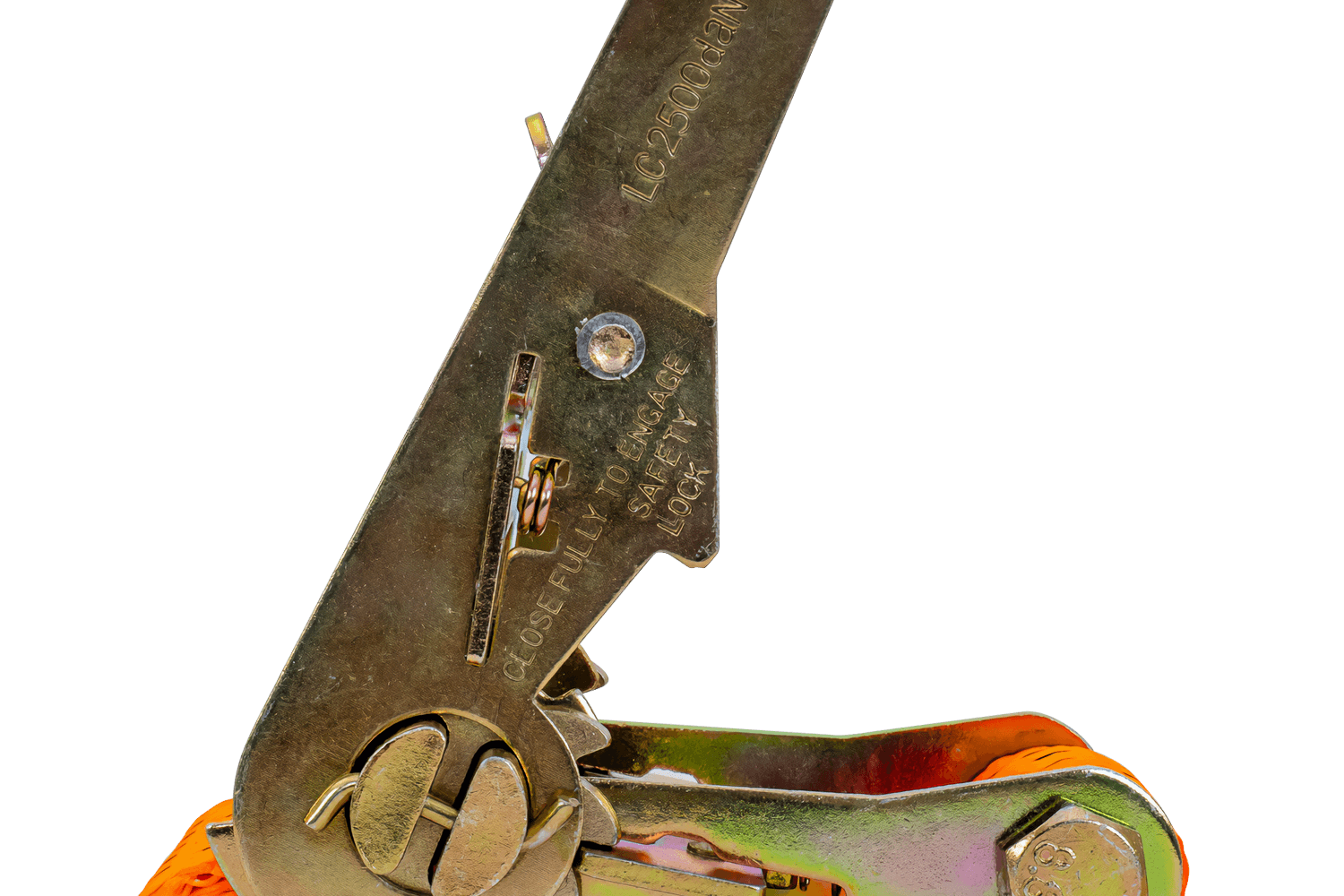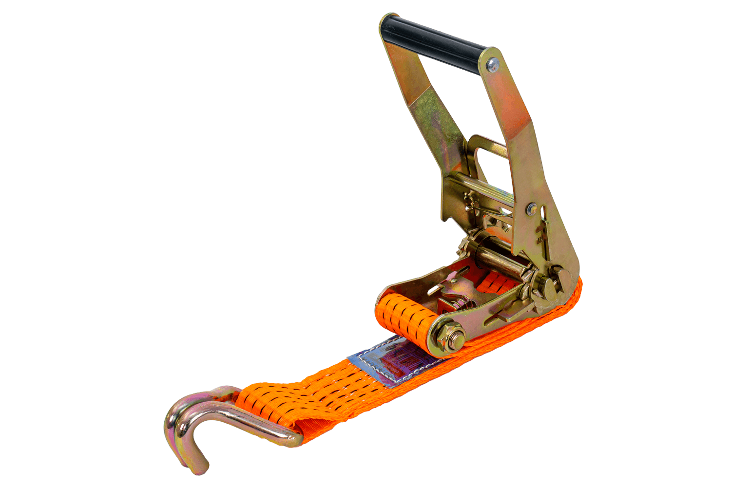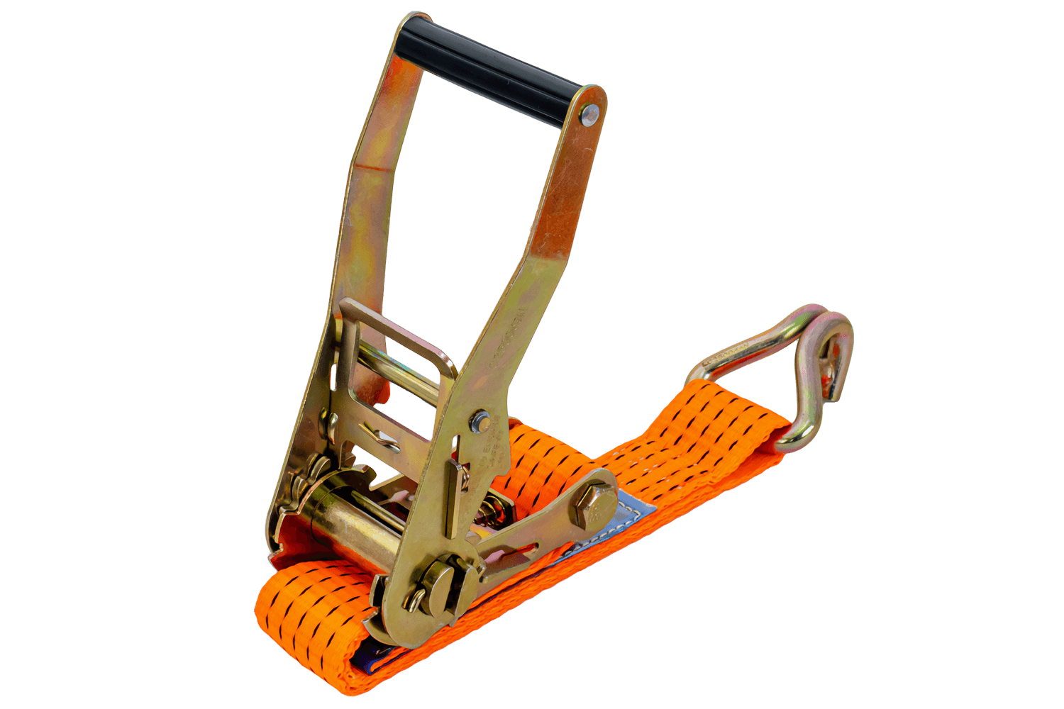 De oranje UNITRAILER ratelband bestaat uit twee delen: een korter deel met ratel en haak, en een langer deel met spanband en haak. De totale lengte van de spanband, inclusief spanband en gesp, is 6 meter , wat voldoende is voor het vastzetten van grotere ladingen. De 50 mm brede spanband zorgt voor voldoende druk. De spanband heeft een robuuste spankracht tot 5 ton (5000 daN) , waardoor hij geschikt is voor het vastzetten van zwaardere ladingen.