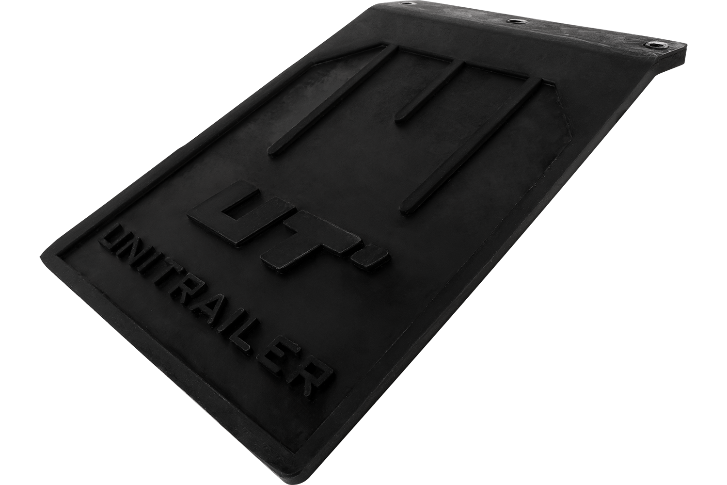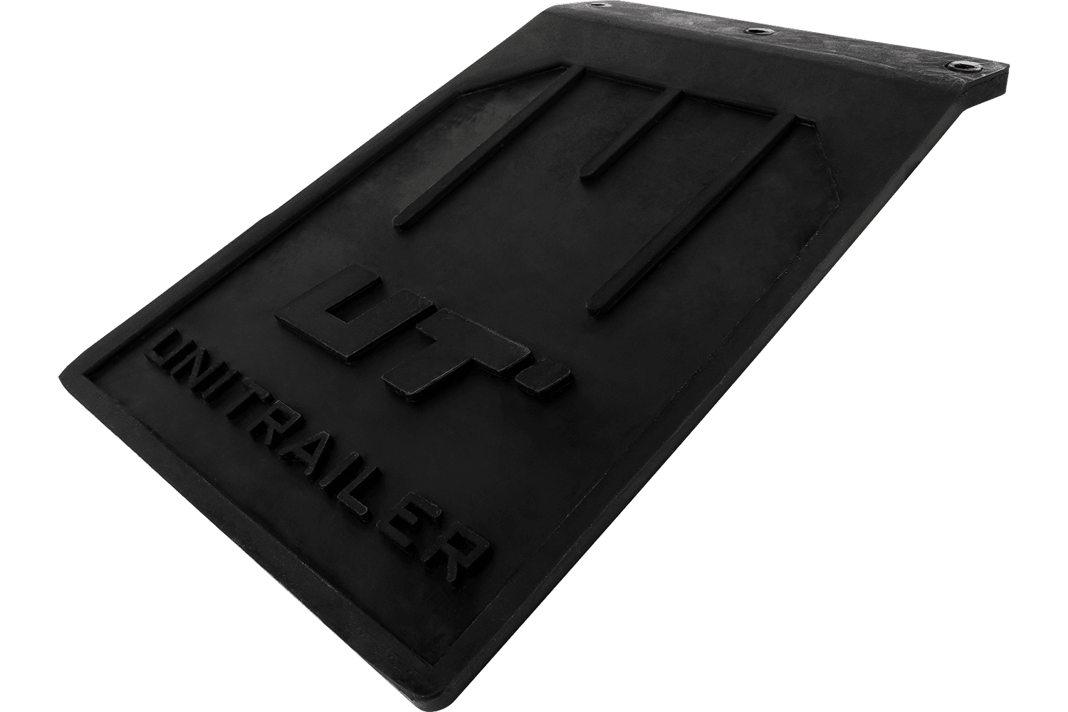 - Een set van twee UNITRAILER rubberen spatlappen, elk 233 mm hoog en 185 mm breed. Gemaakt van sterk weerbestendig technisch rubber, dat effectief beschermt tegen modder, water en stenen die van onder de wielen worden gegooid.