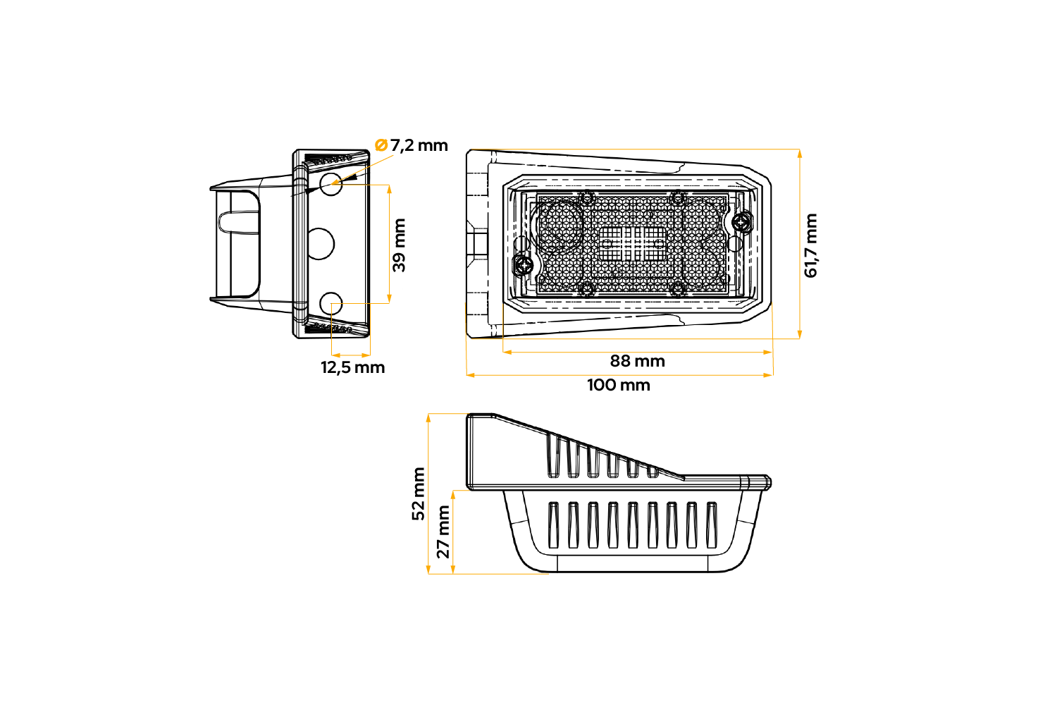 De DPT15 LED markeringslamp van DOBPLAST is ontworpen voor montage aan zowel de linker- als de rechterzijde van het voertuig en heeft de volgende afmetingen: breedte 100 mm, hoogte 61,7 mm, diepte 52 mm . Het is ontworpen om te werken binnen een spanning van 12-24 V en kan worden gebruikt in aanhangwagens, landbouwmachines, vrachtwagens en trailers, wat de universaliteit ervan benadrukt . Uitgerust met een hoekige montagebeugel en een 0,5 m lange platte kabel , is de installatie eenvoudig en snel. Dankzij het gebruik van LED-technologie De lamp biedt hoge prestaties, duurzaamheid en energie-efficiëntie, waardoor de veiligheid in verschillende wegomstandigheden wordt gewaarborgd.